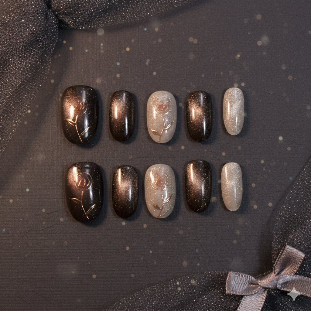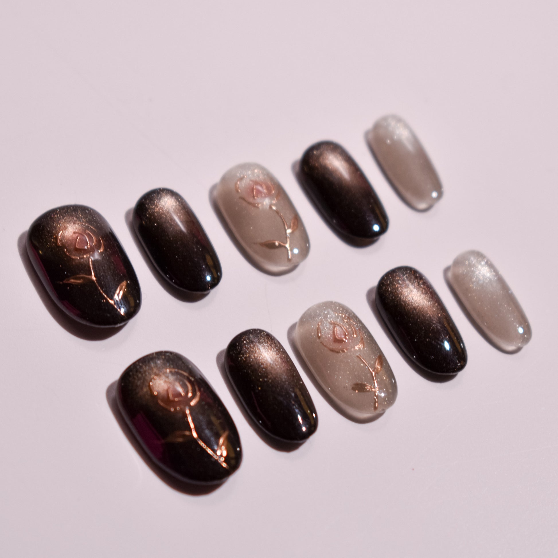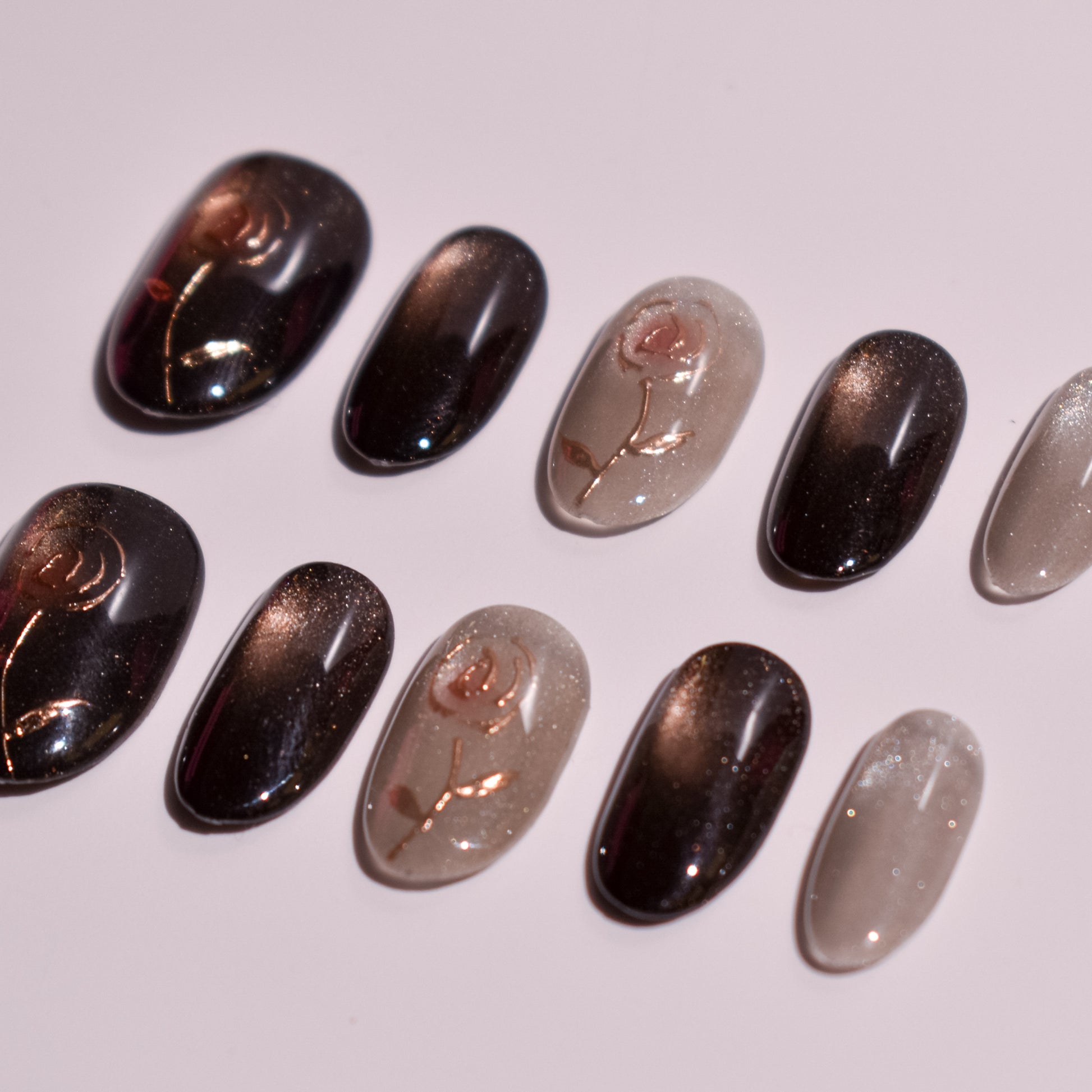 - 10 uniquely designed, hand-painted press-on nails made with high-quality UV gel.