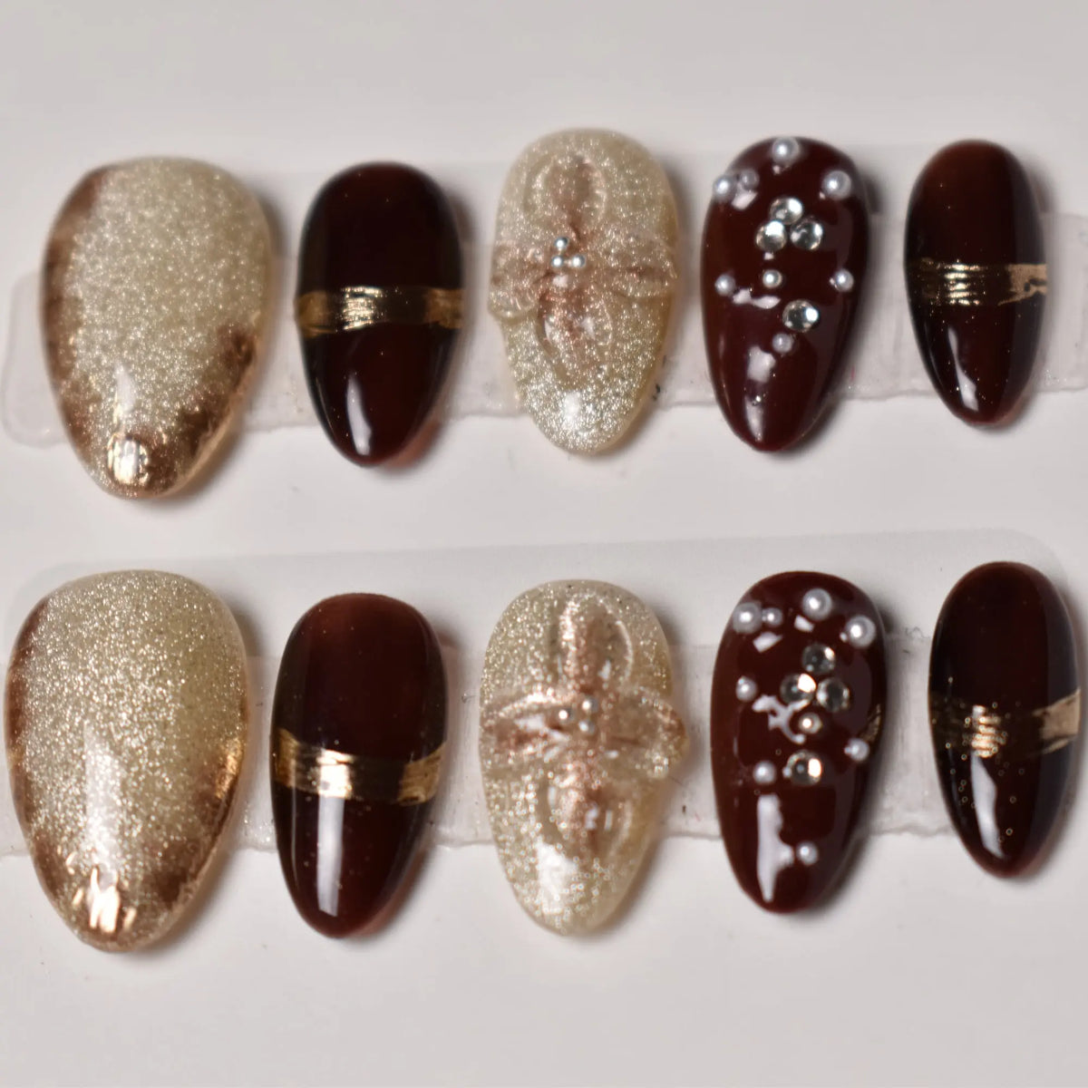 - 10 uniquely designed, hand-painted press-on nails made with high-quality UV gel.