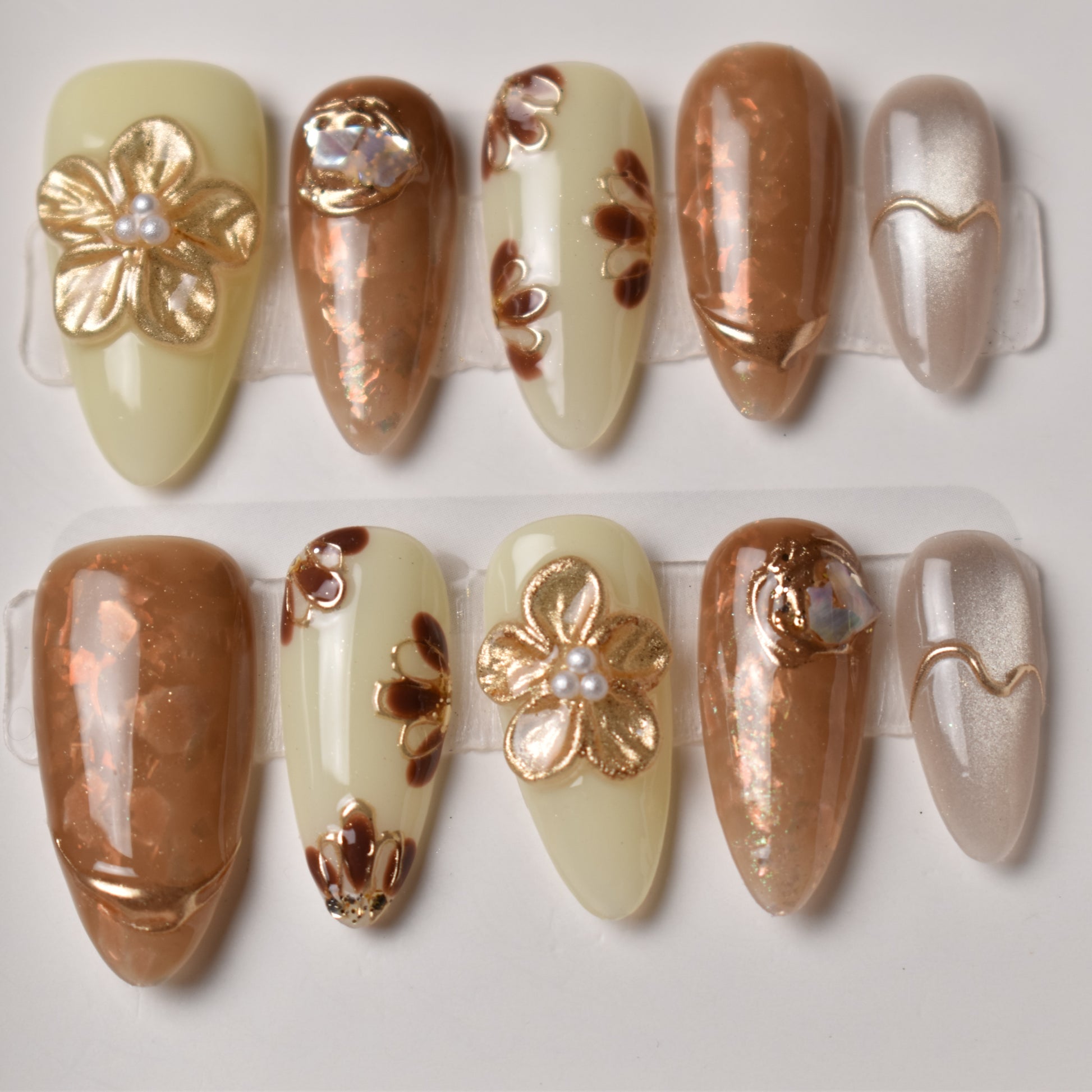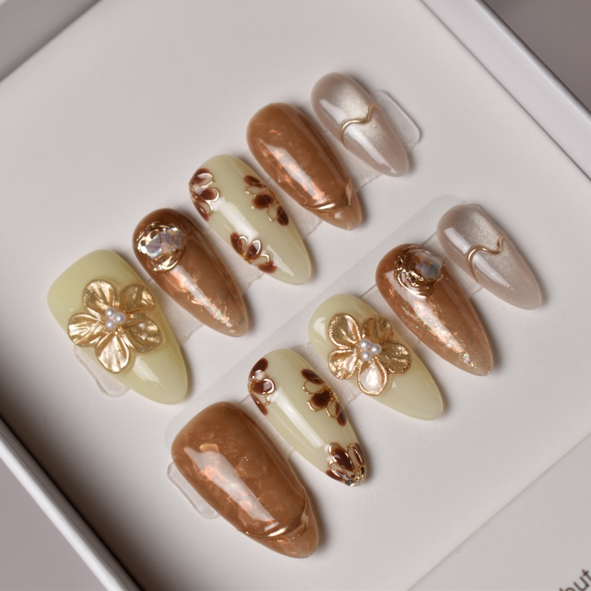 - 10 uniquely designed, hand-painted press-on nails made with high-quality UV gel.