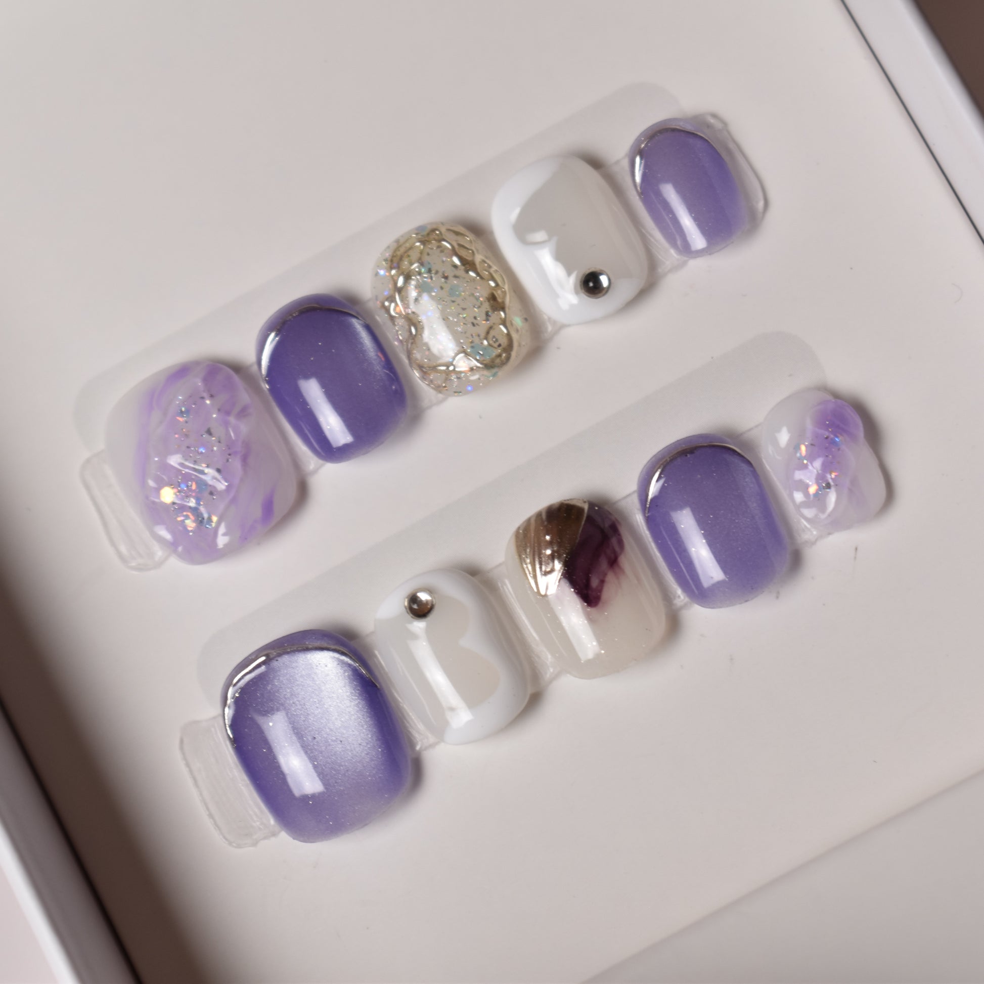 - 10 uniquely designed, hand-painted press-on nails made with high-quality UV gel.