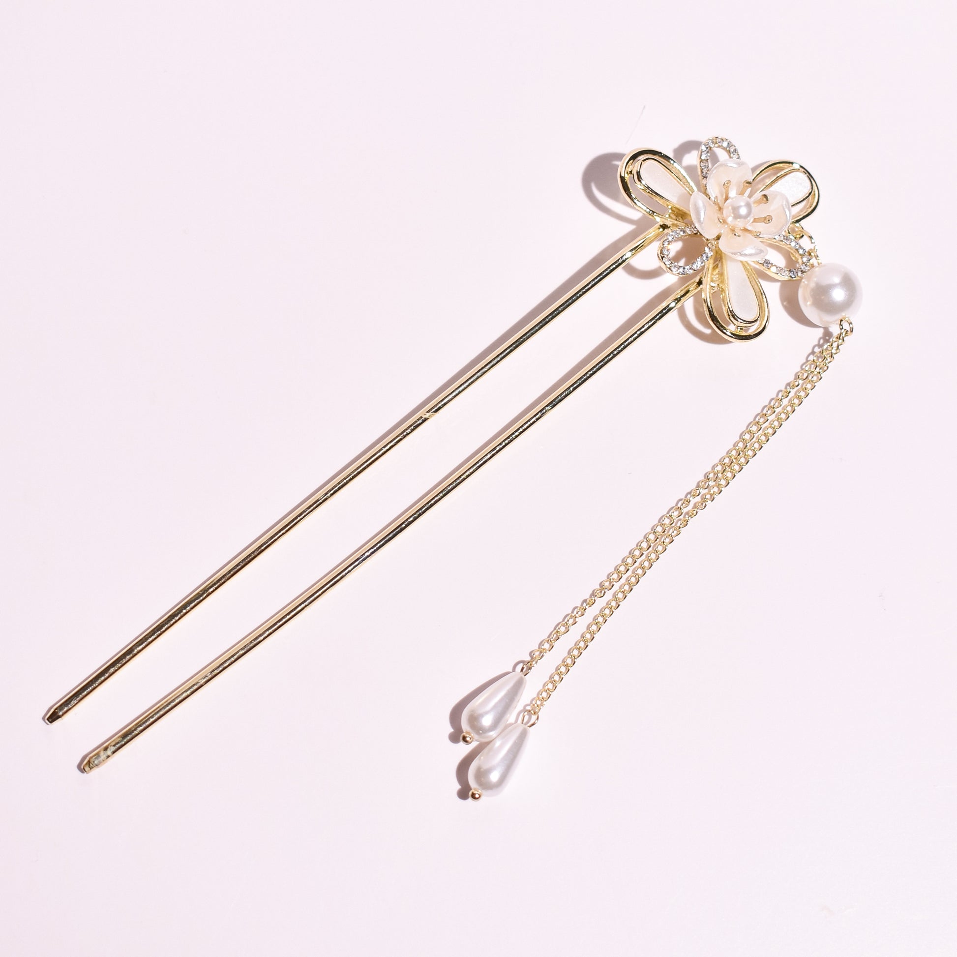 Like a cherry blossom caught in a gentle spring breeze, this hairpin embodies the soft, fleeting beauty of the Wafu Aesthetic. The delicate ivory petals and shimmering crystals mirror the morning dew resting on a flower, offering a timeless symbol of renewal and ethereal grace for your tresses.