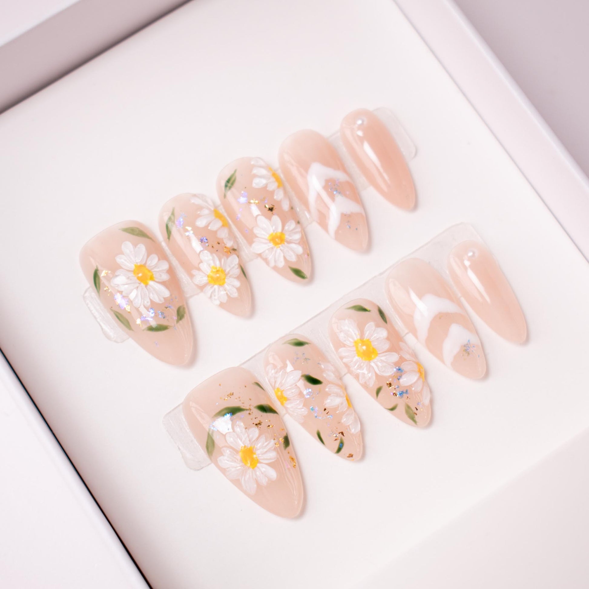 - 10 uniquely designed, hand-painted press-on nails made with high-quality UV gel.
