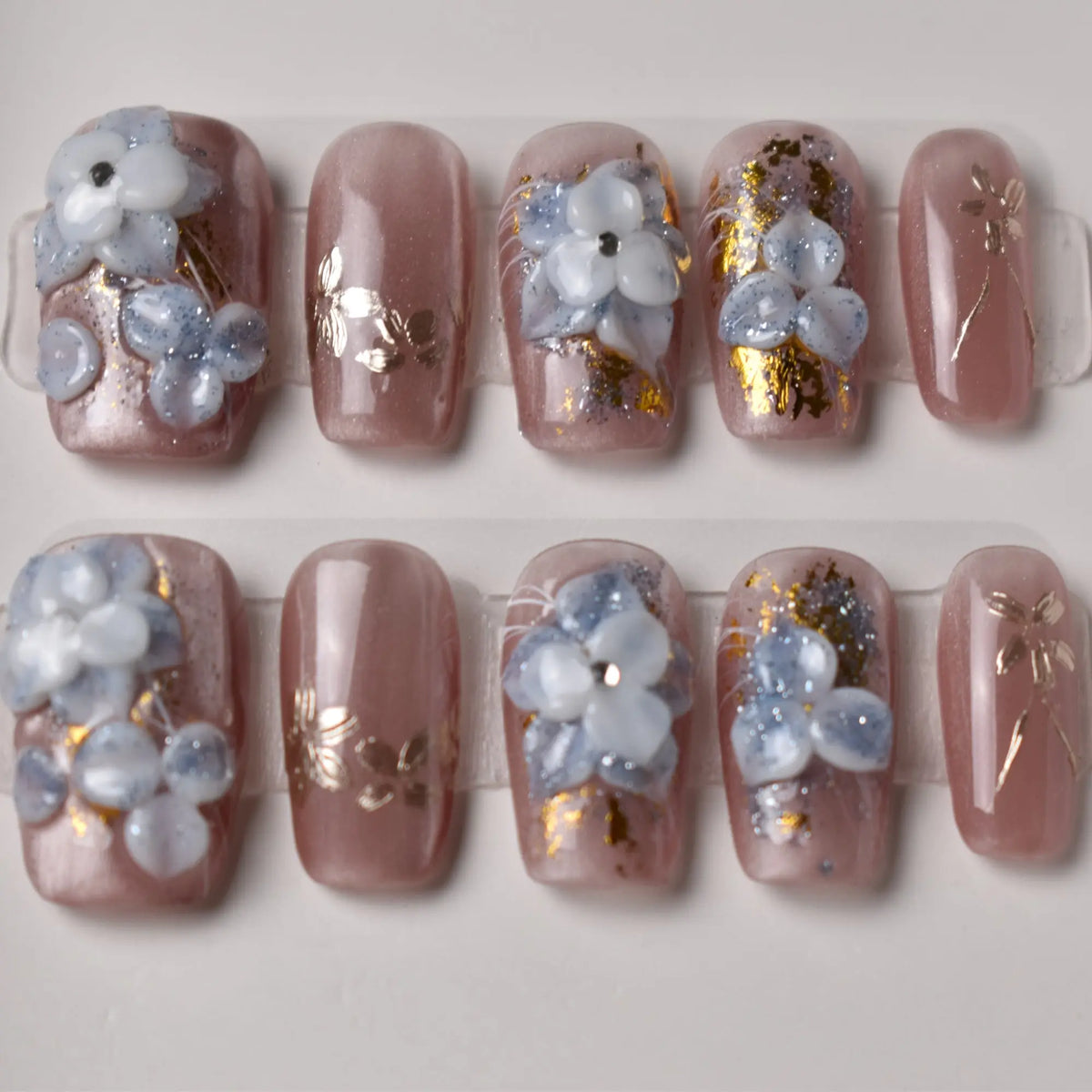 - 10 uniquely designed, hand-painted press-on nails made with high-quality UV gel.