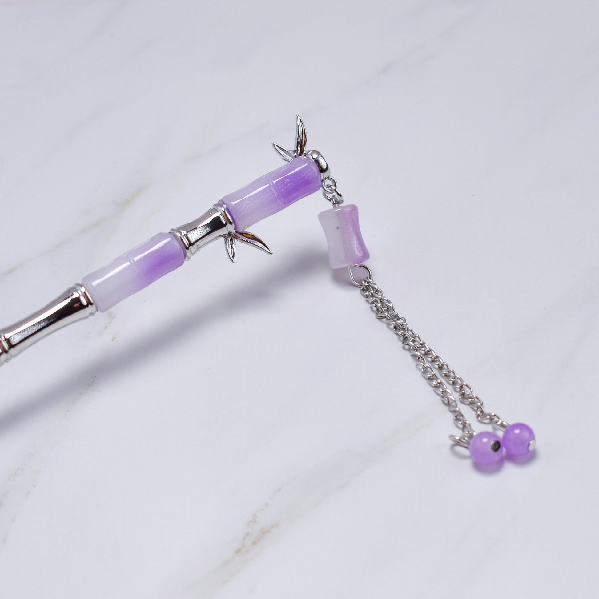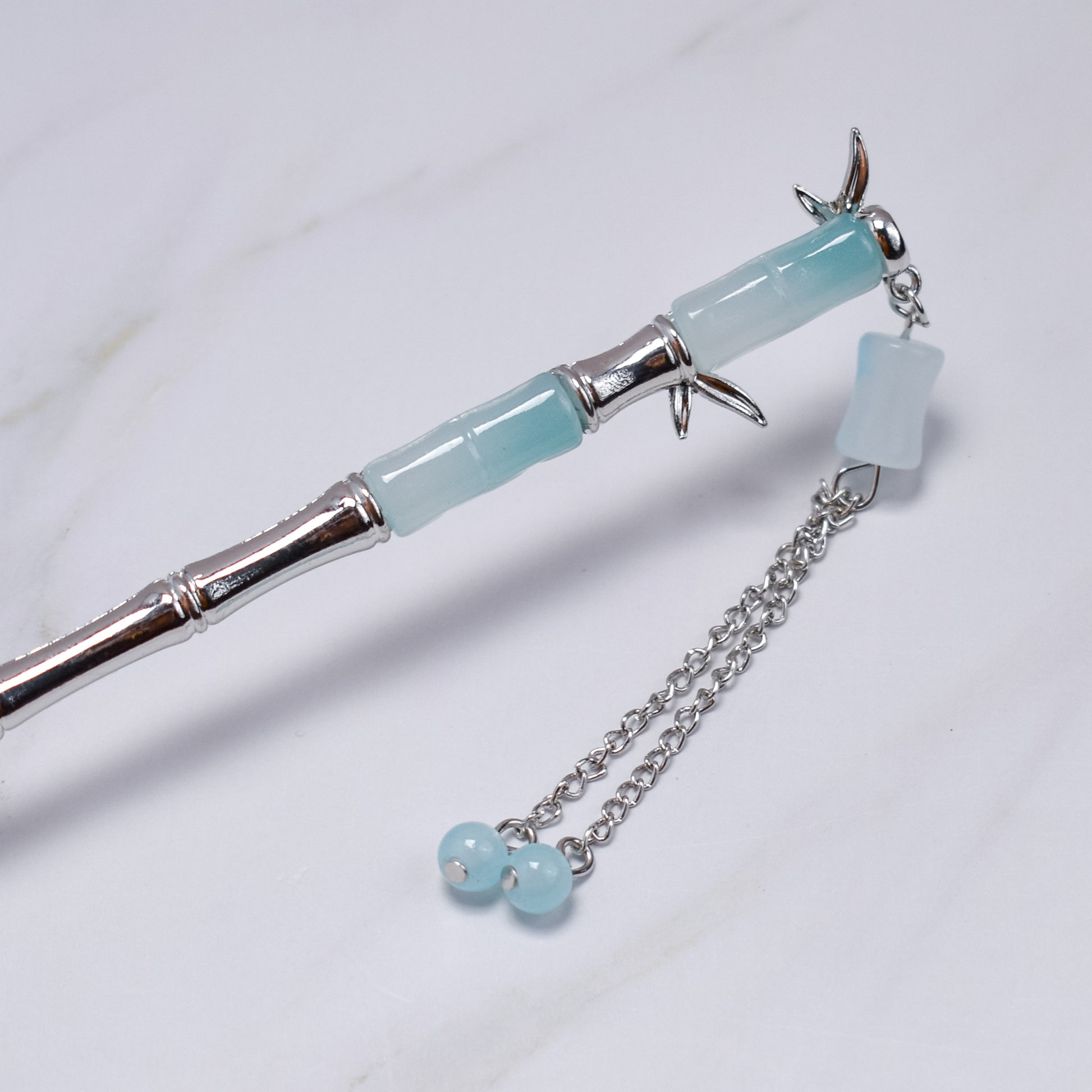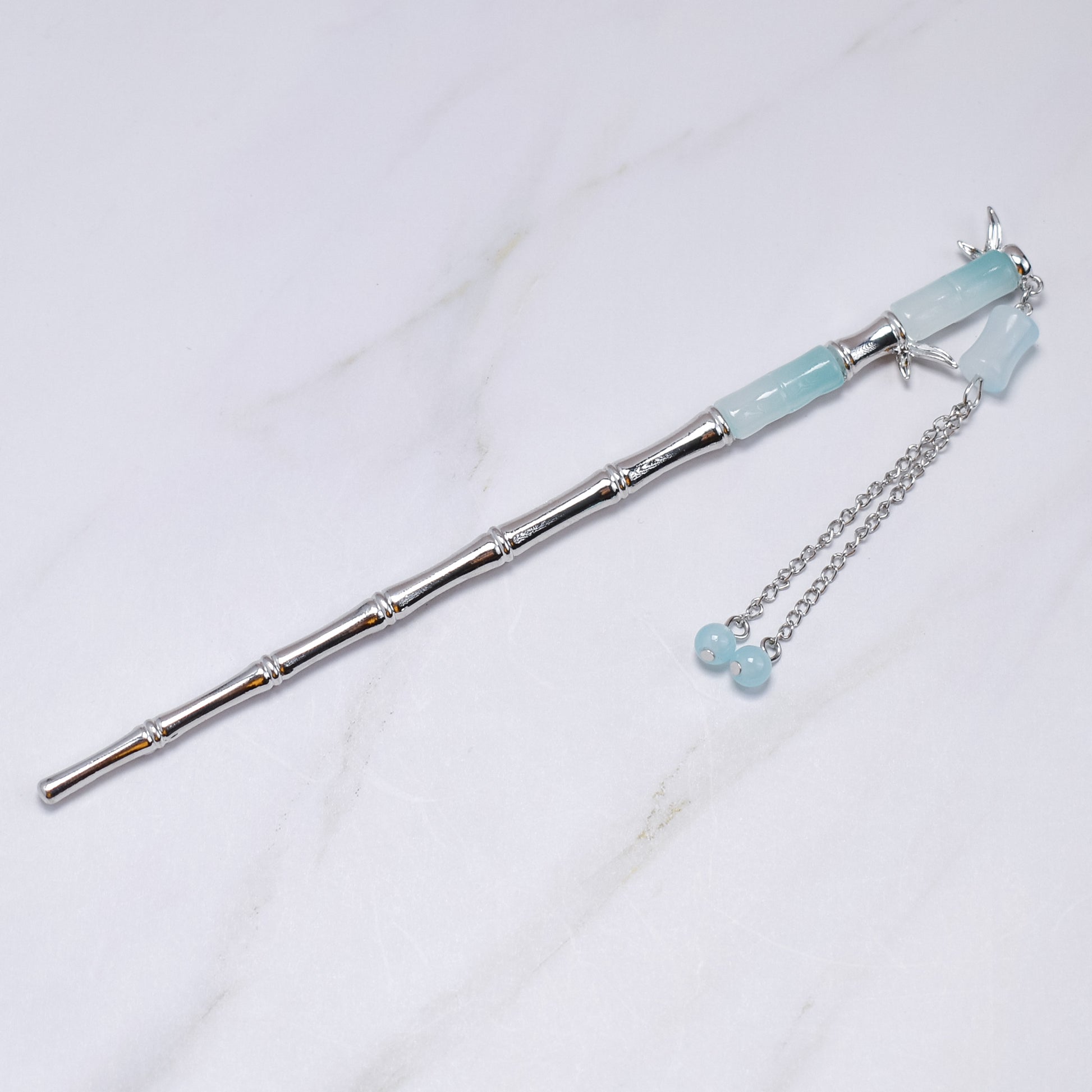 Graceful, minimalistic, and inspired by the quiet beauty of bamboo, the Crystal Bamboo Hairpin captures a sense of natural elegance and serenity. Each piece is designed with translucent, gemstone-style bamboo segments and a polished silver base, giving the accessory a clean yet enchanting appearance.