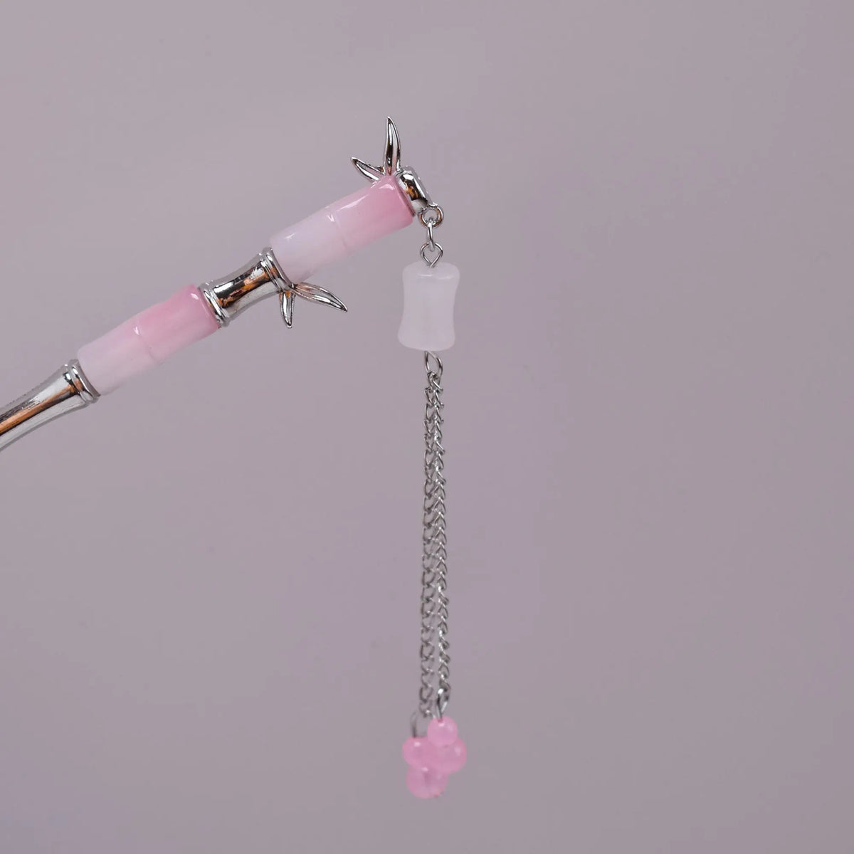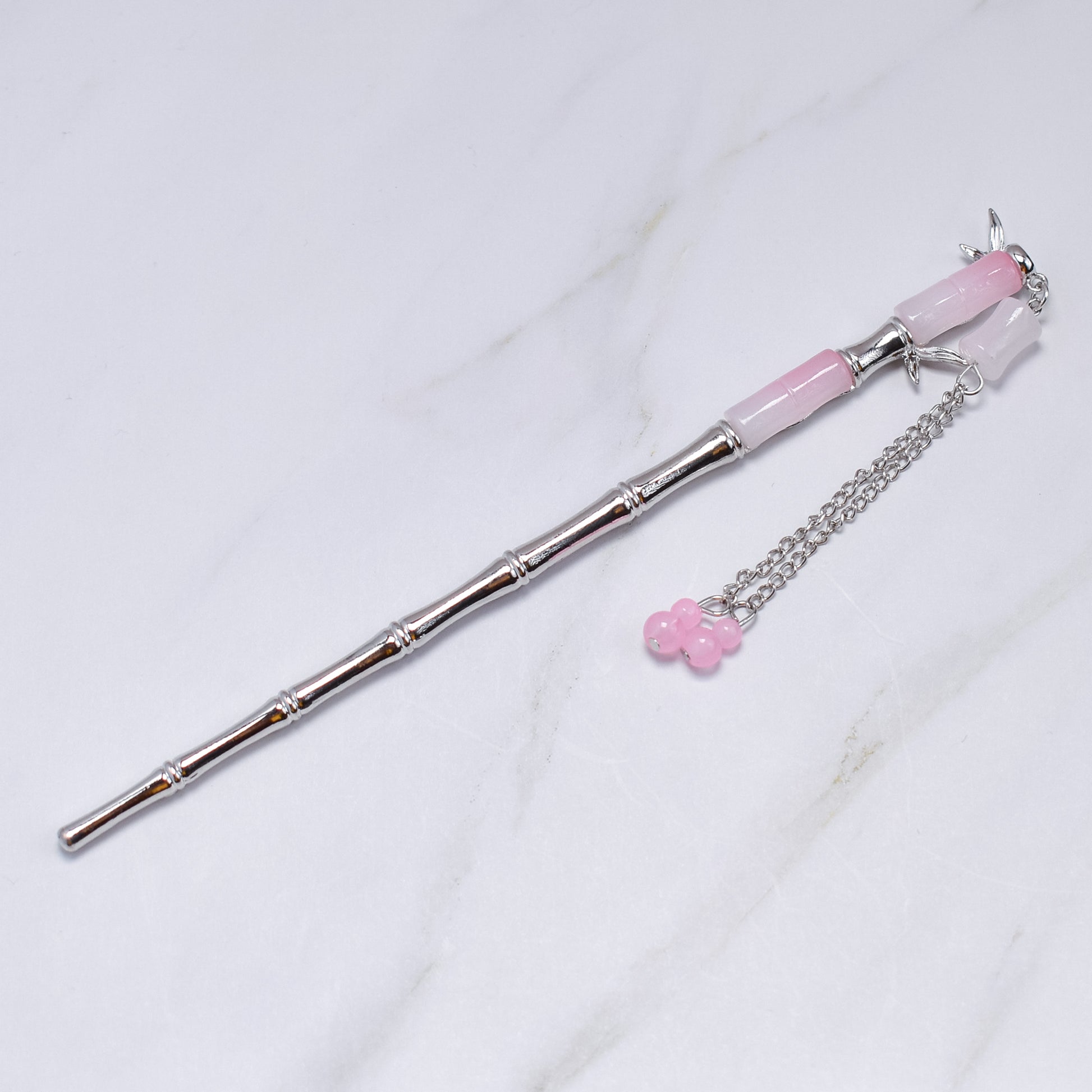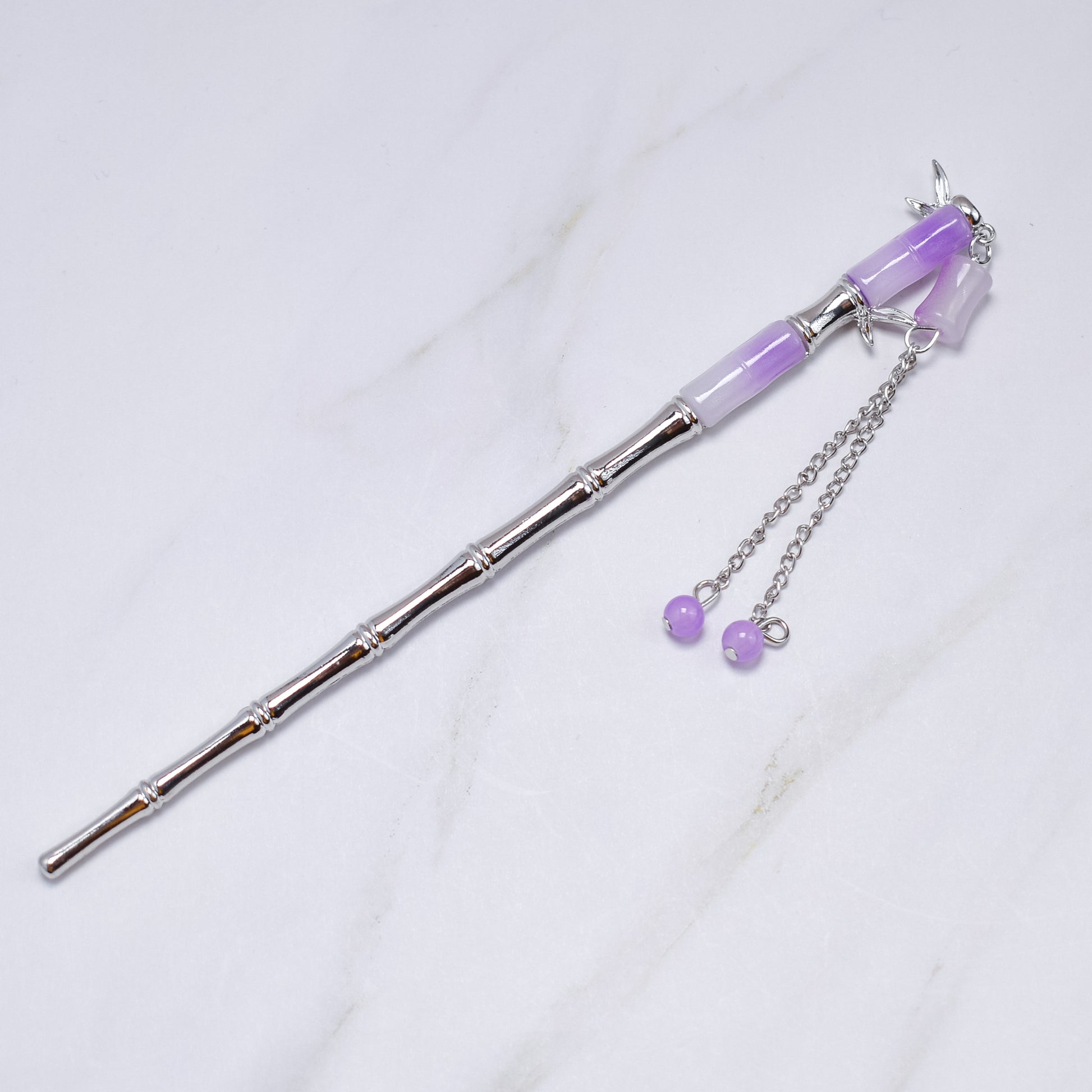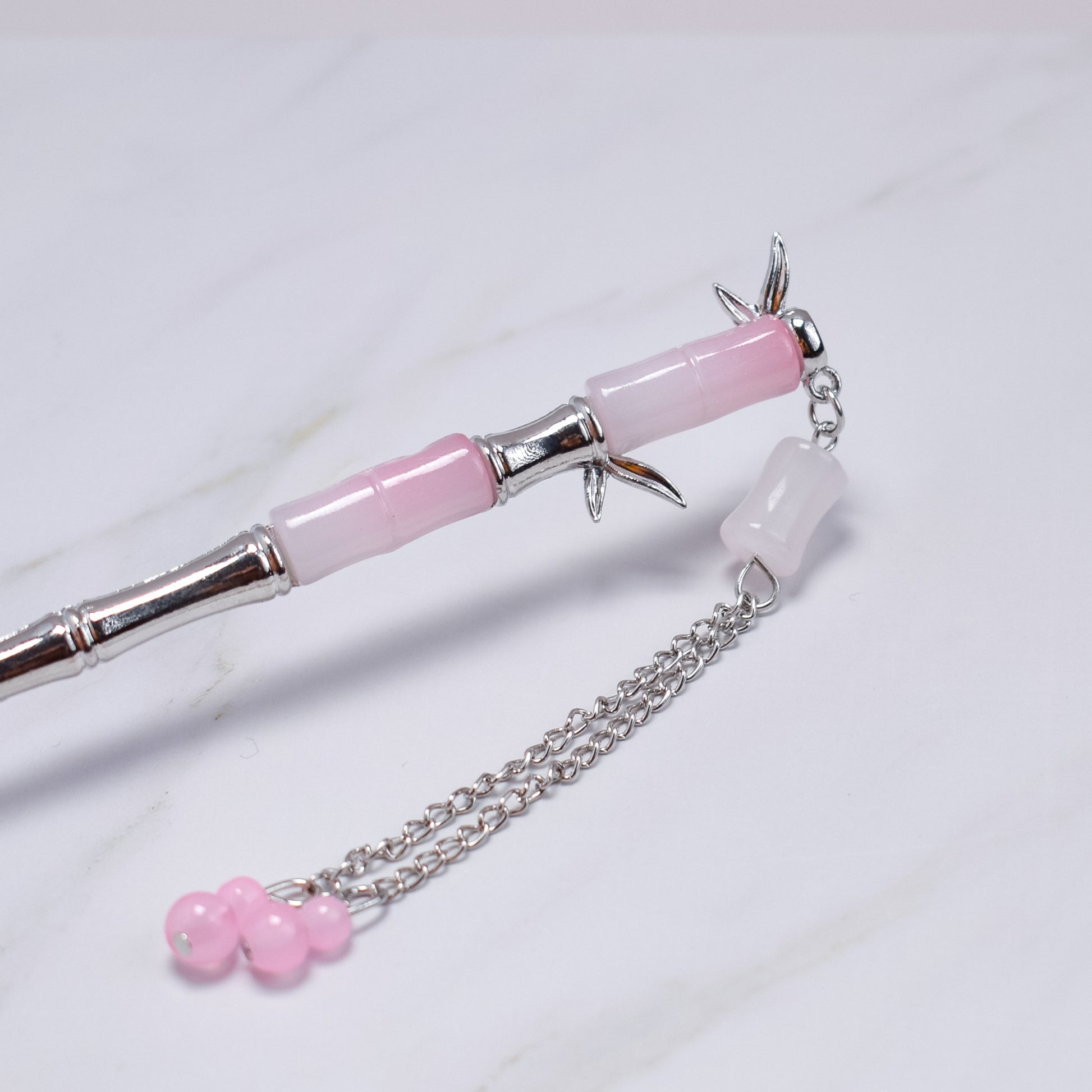 Graceful, minimalistic, and inspired by the quiet beauty of bamboo, the Crystal Bamboo Hairpin captures a sense of natural elegance and serenity. Each piece is designed with translucent, gemstone-style bamboo segments and a polished silver base, giving the accessory a clean yet enchanting appearance.