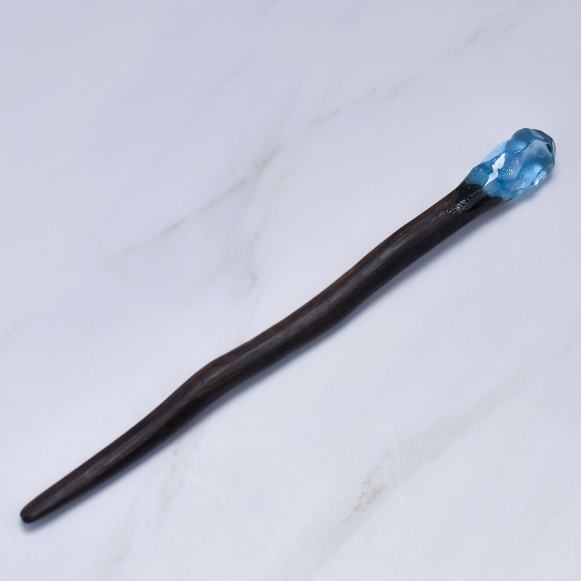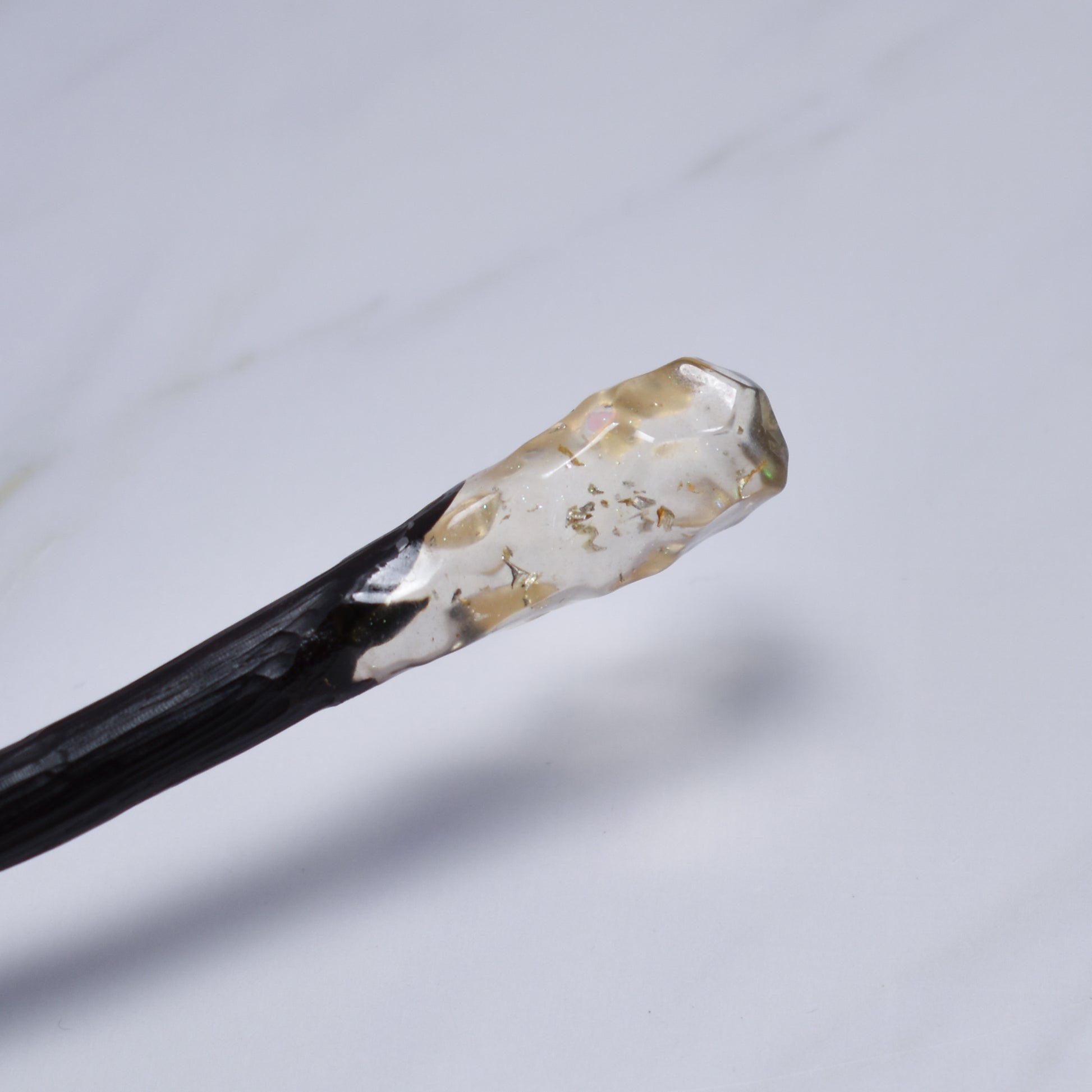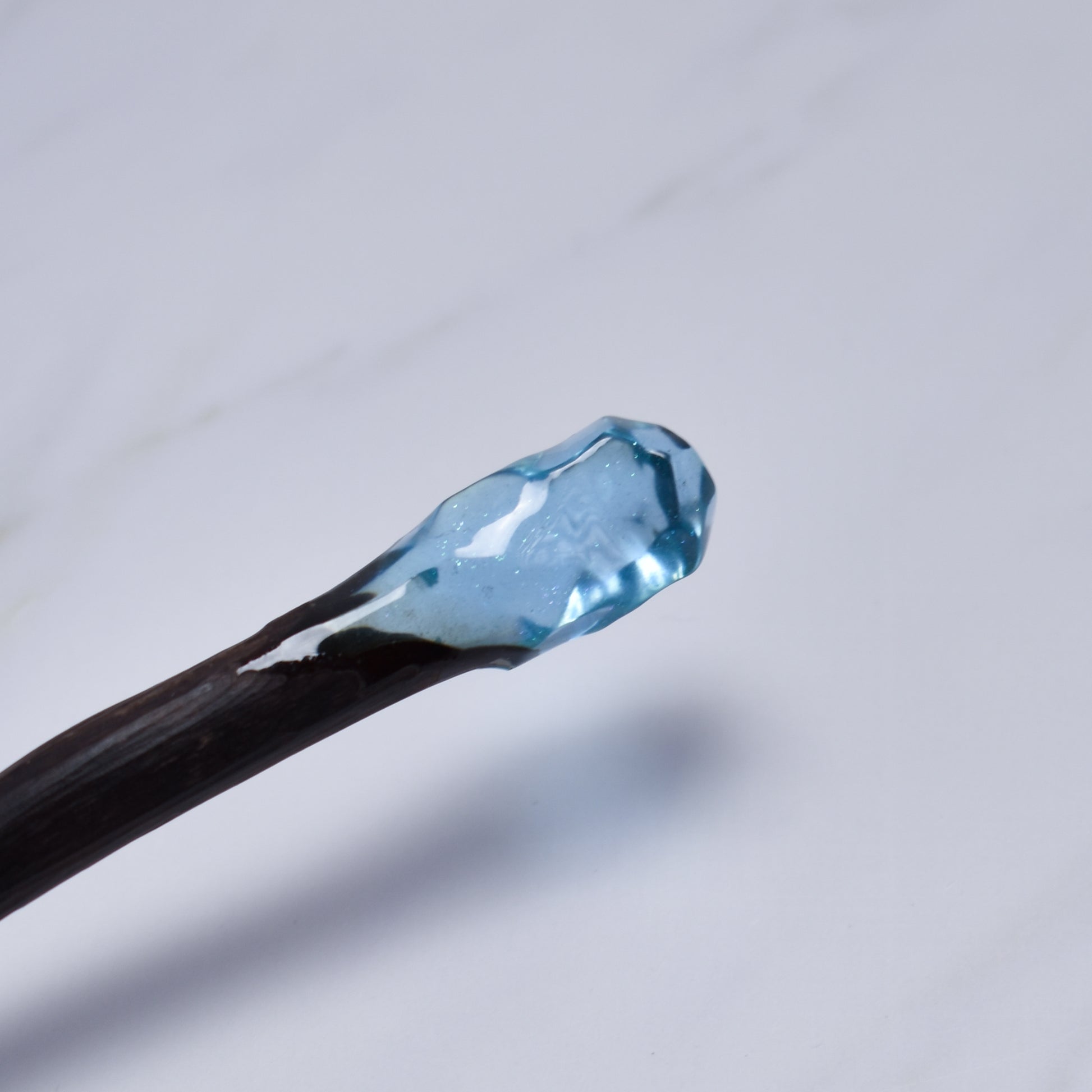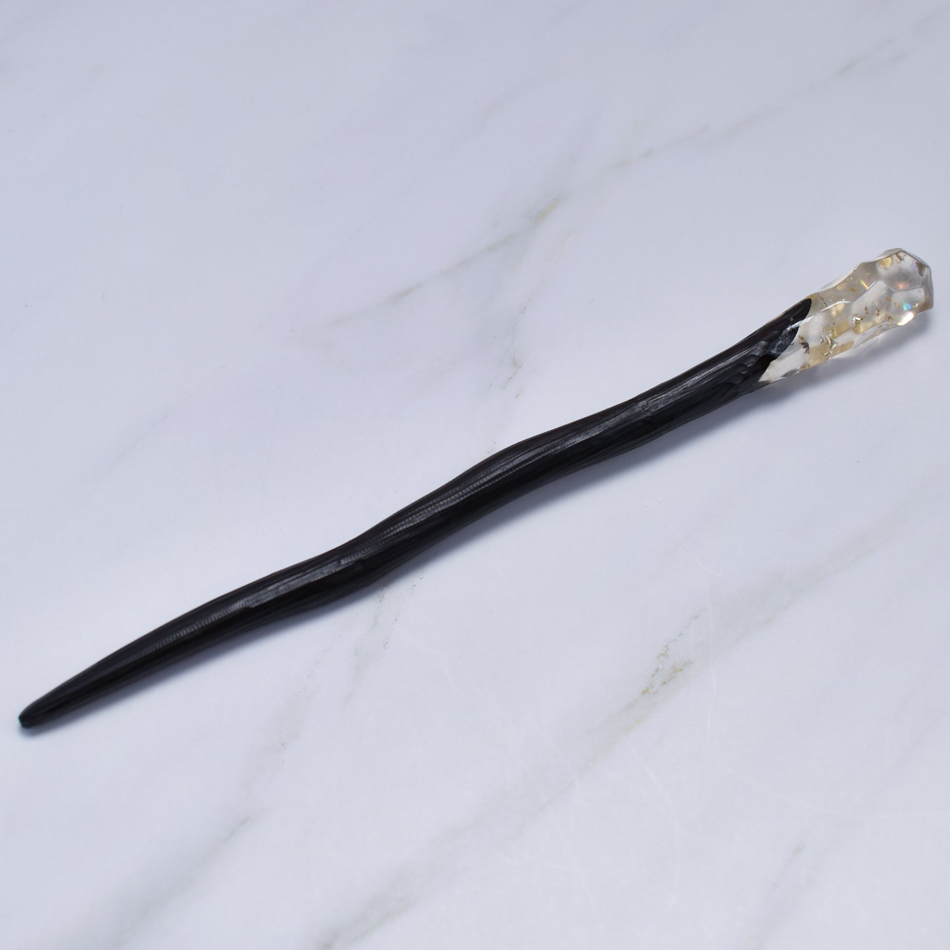At the top, a sculpted crystal-style resin tip catches the light from every angle, creating a stunning gemstone effect that elevates even the simplest updo. Lightweight and smooth, this hair stick is designed for effortless styling and secure hold throughout the day.