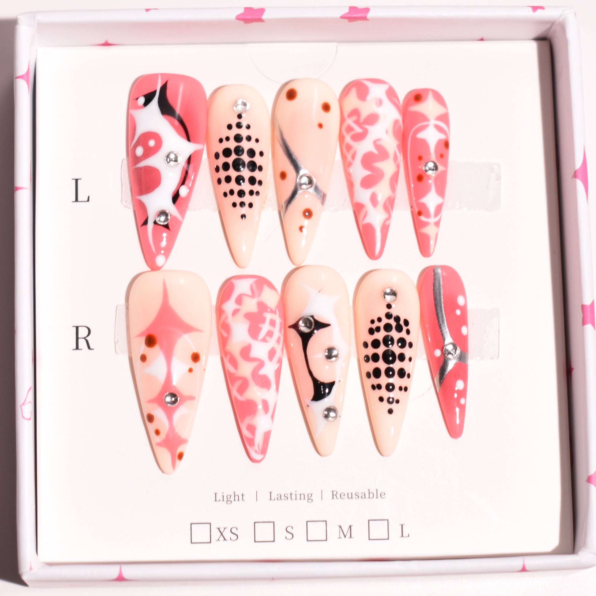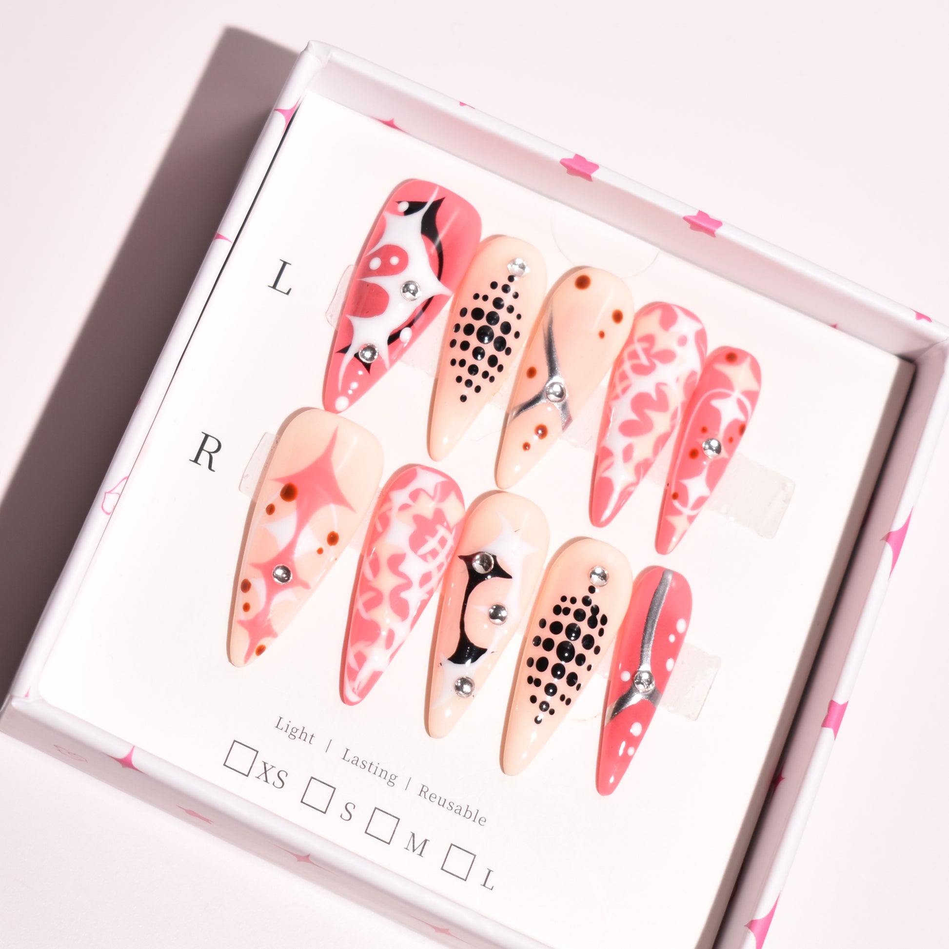 - Blings are available in XS, S, and M & L perfectly fitting different nail sizes and shapes.