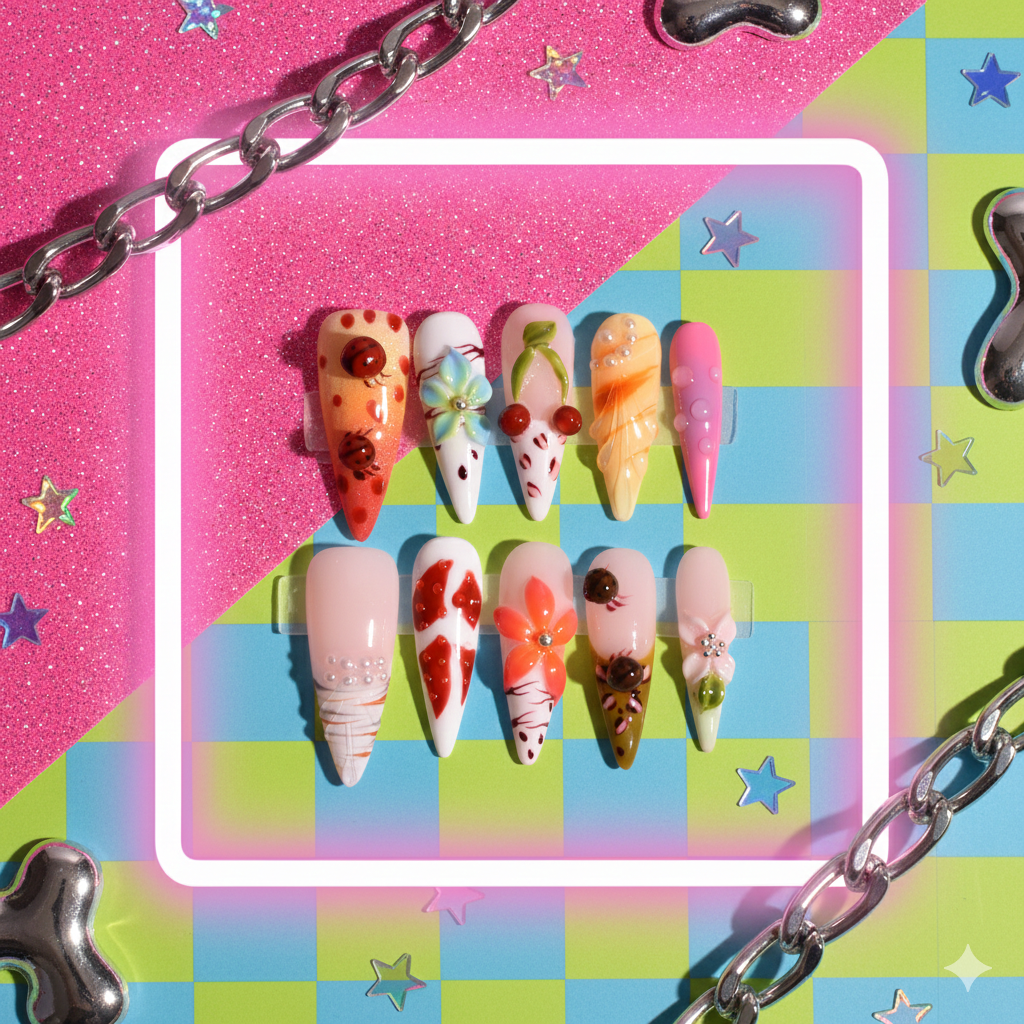 Perfect for summer festivals, anime conventions, Y2K aesthetics, and bold fashion moments, this reusable press-on nail set delivers salon-level artistry without the salon commitment. Lightweight, durable, and easy to apply, these luxury handmade nails are designed for trendsetters who want vibrant, conversation-starting nail art.
