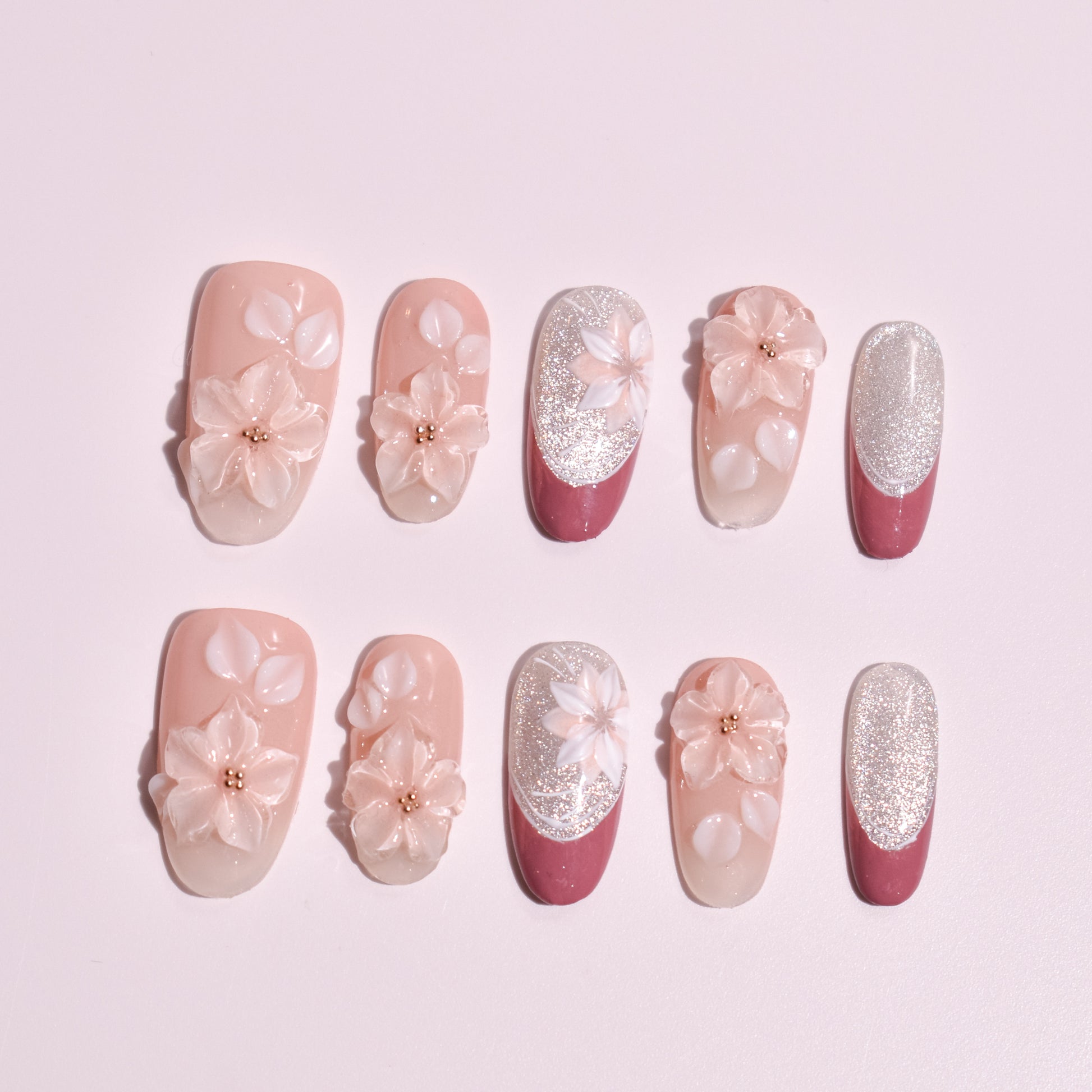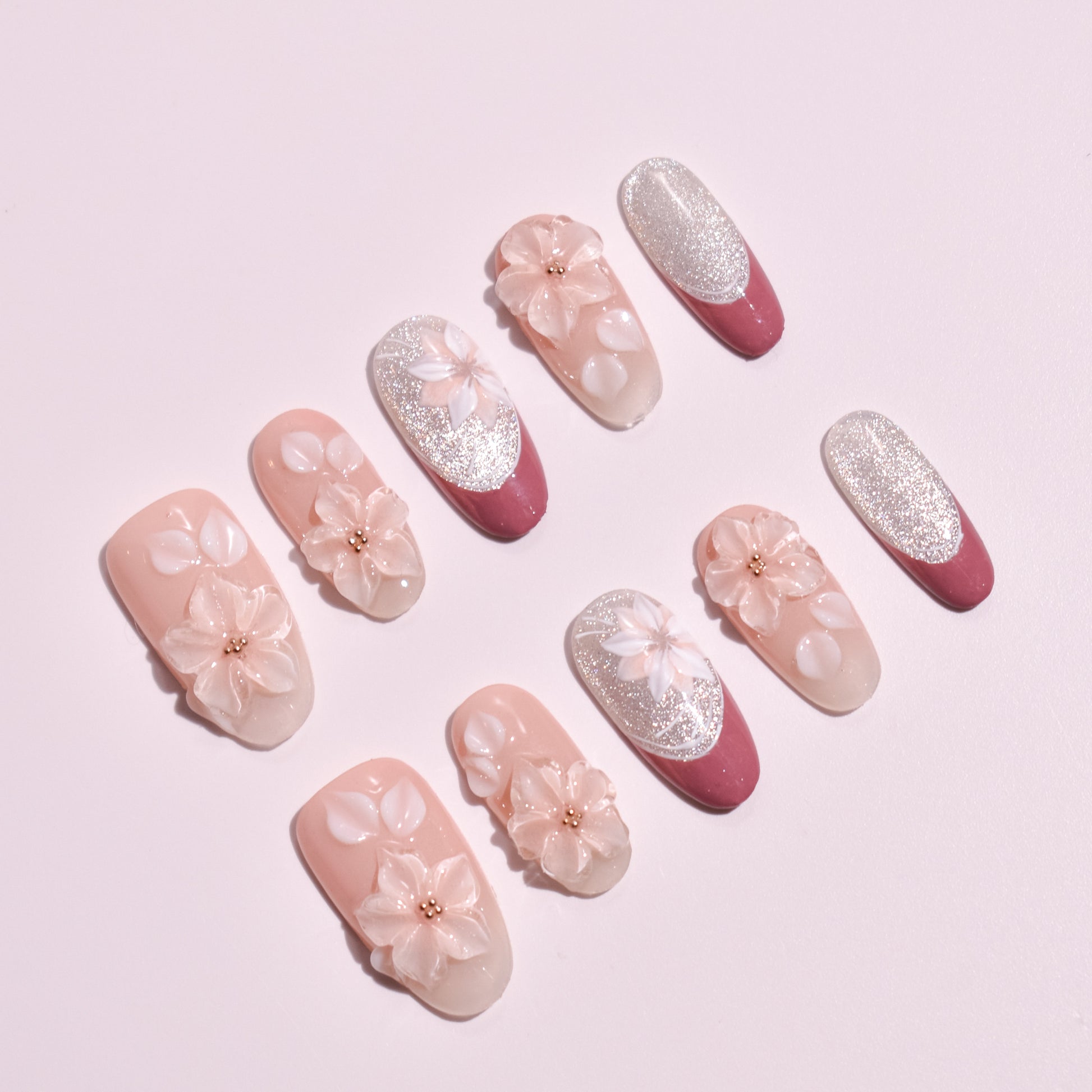 The soul of this Custom Japanese Nail Art set is found in its multidimensional textures and hand-sculpted elegance. Every nail is a curated masterpiece of Handmade Press-on Nails craftsmanship: