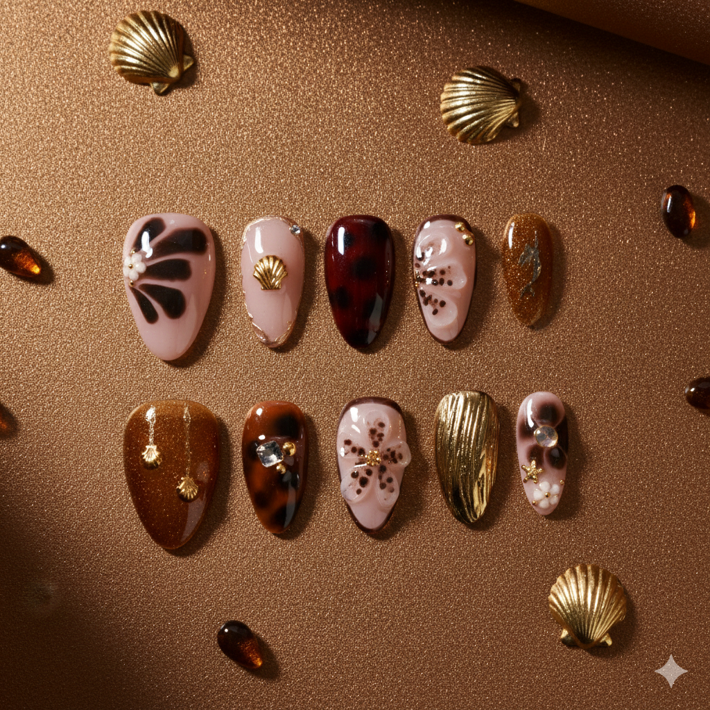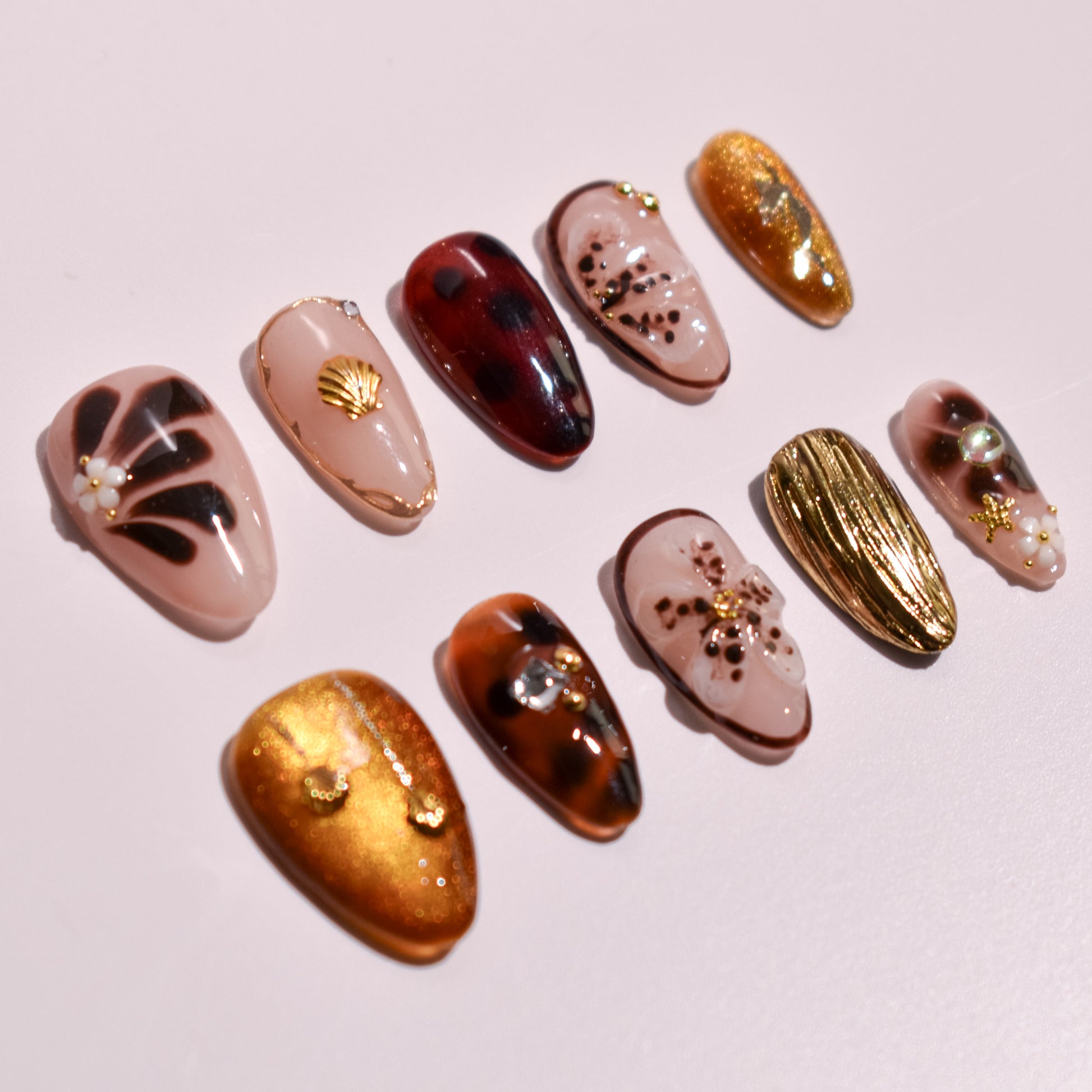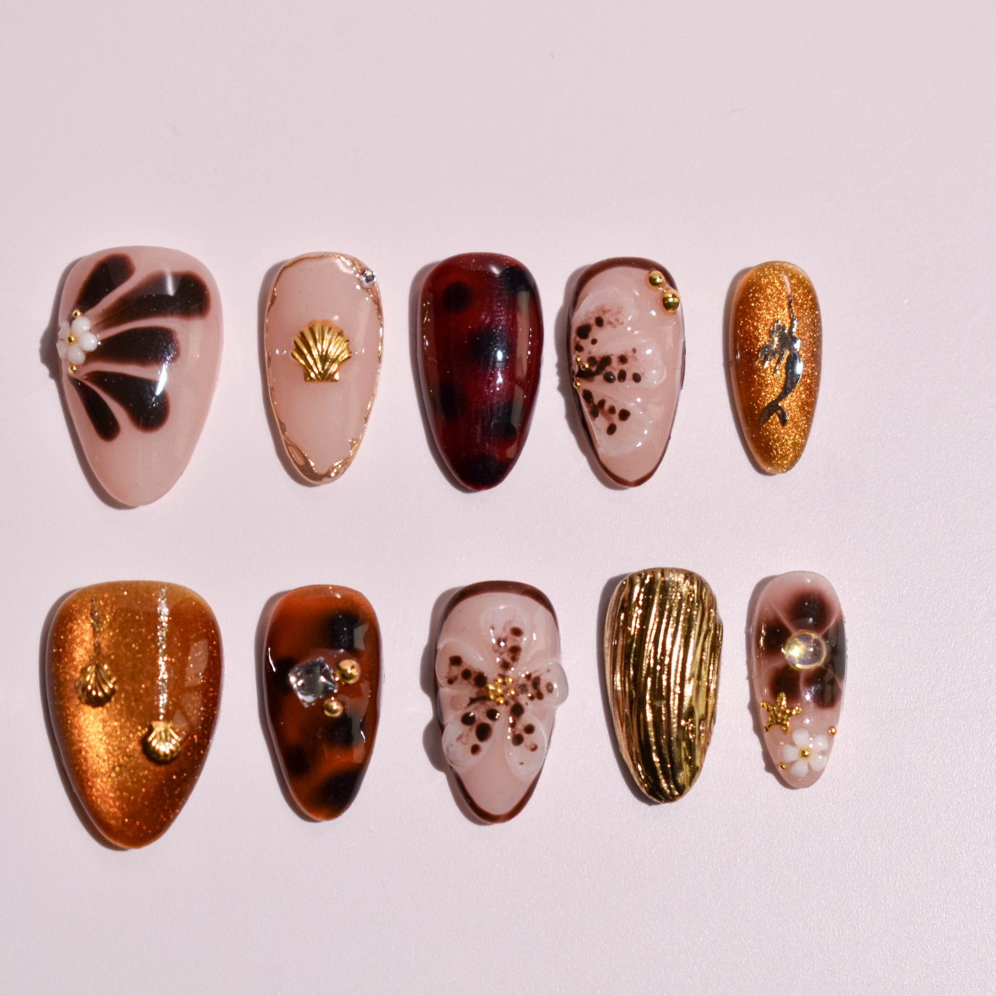 - 10 uniquely designed, hand-painted press-on nails made with high-quality UV gel.
