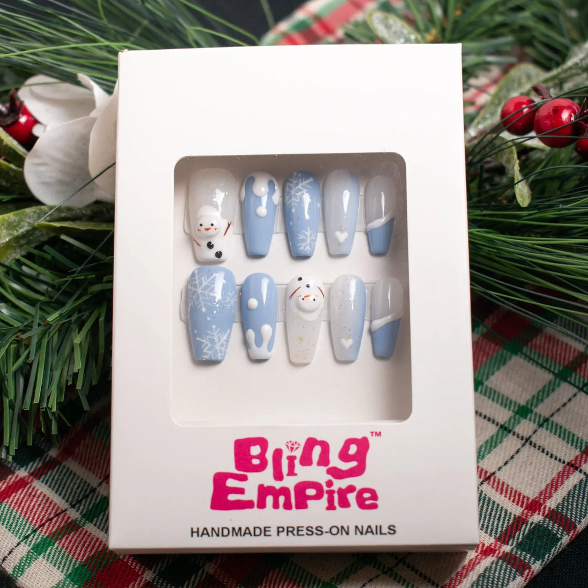 - Design Features: Snowman art, intricate snowflakes, soft glittery details, and playful snow drips
