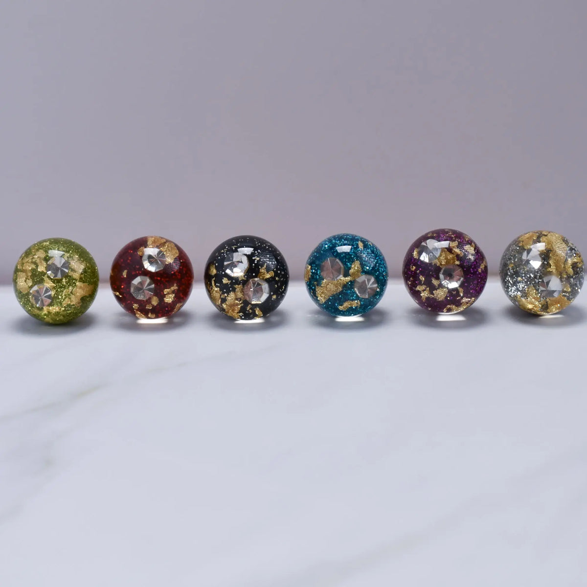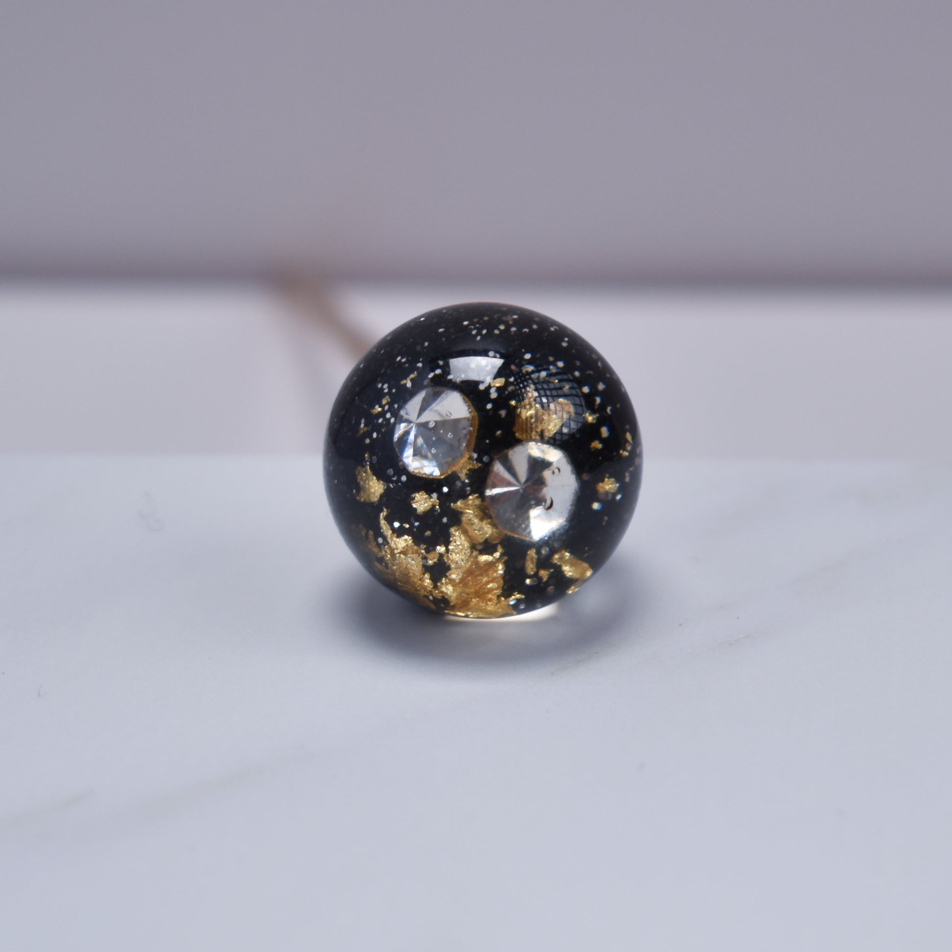 Bring brilliance to every hairstyle with our Gemstone Sparkle Kanzashi Hairpins. Each piece features a glossy resin orb filled with shimmering glitter, metallic gold foil, and faceted crystal accents that catch the light beautifully. Designed to add a touch of luxury to both modern and traditional styles, these hairpins elevate any look with vibrant color and shine.