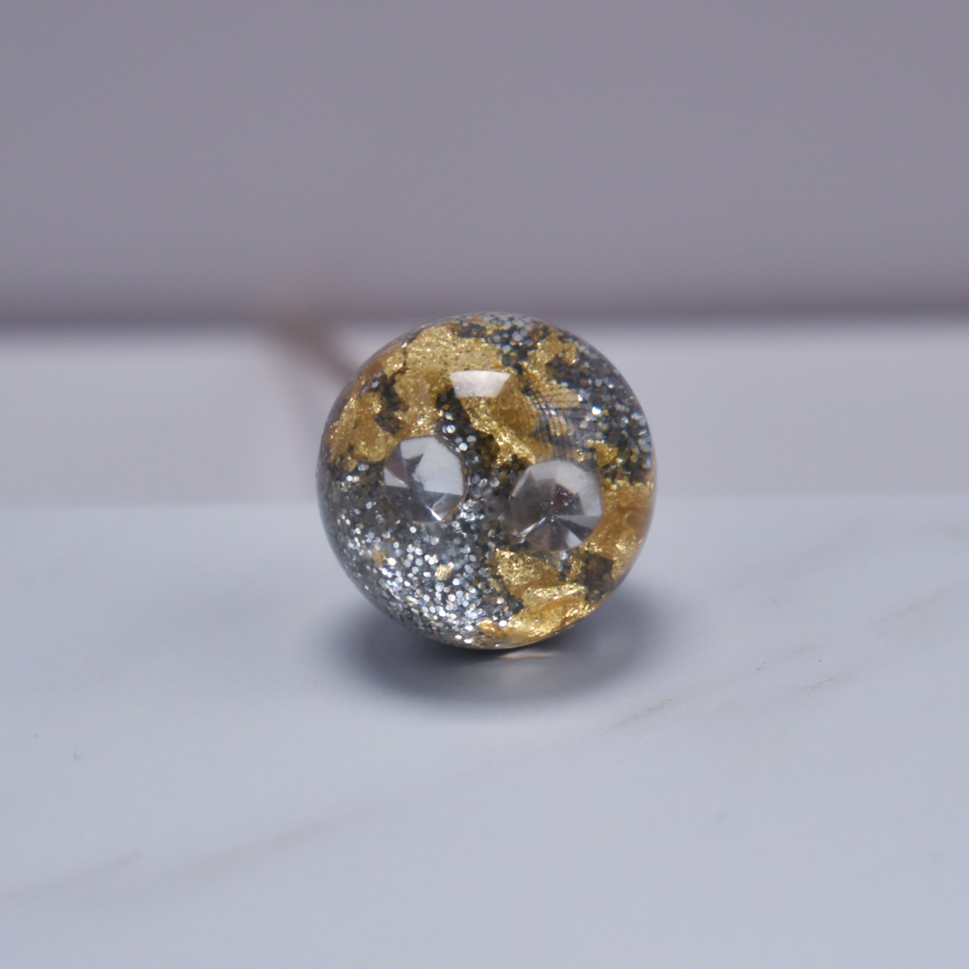 Inclusions: Gold foil flakes + faceted crystal-like gems