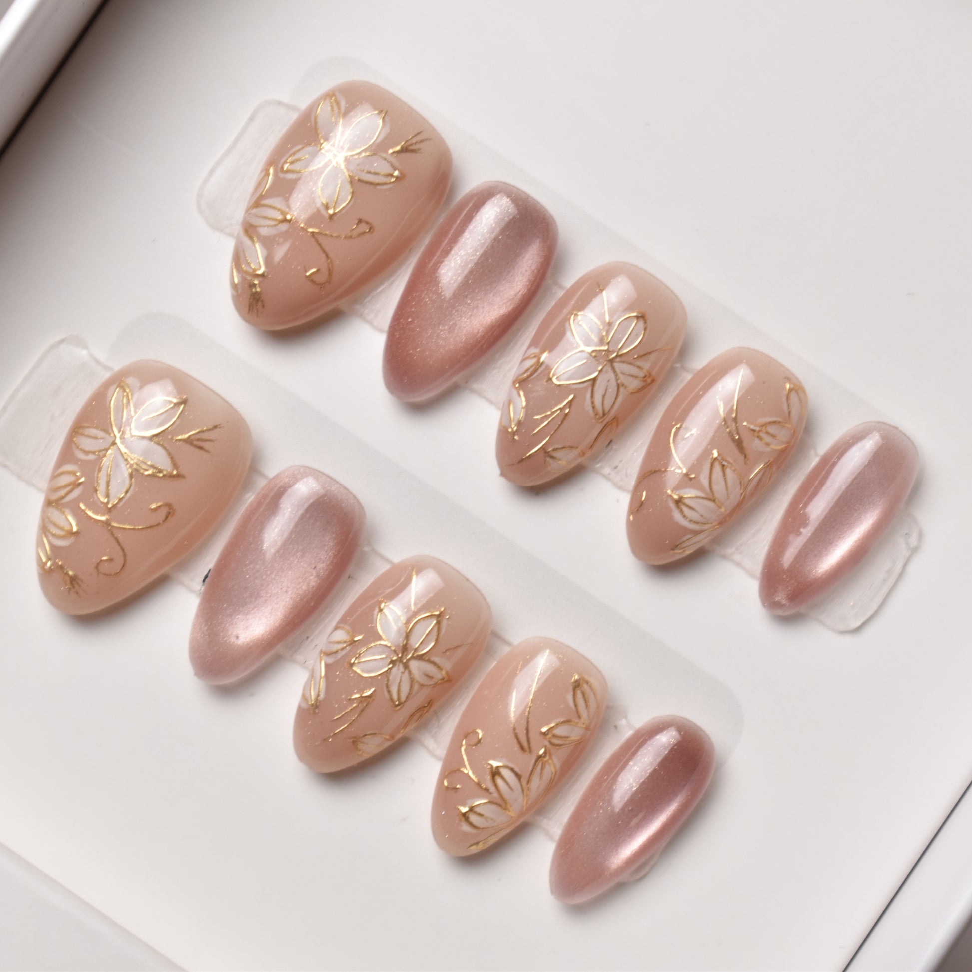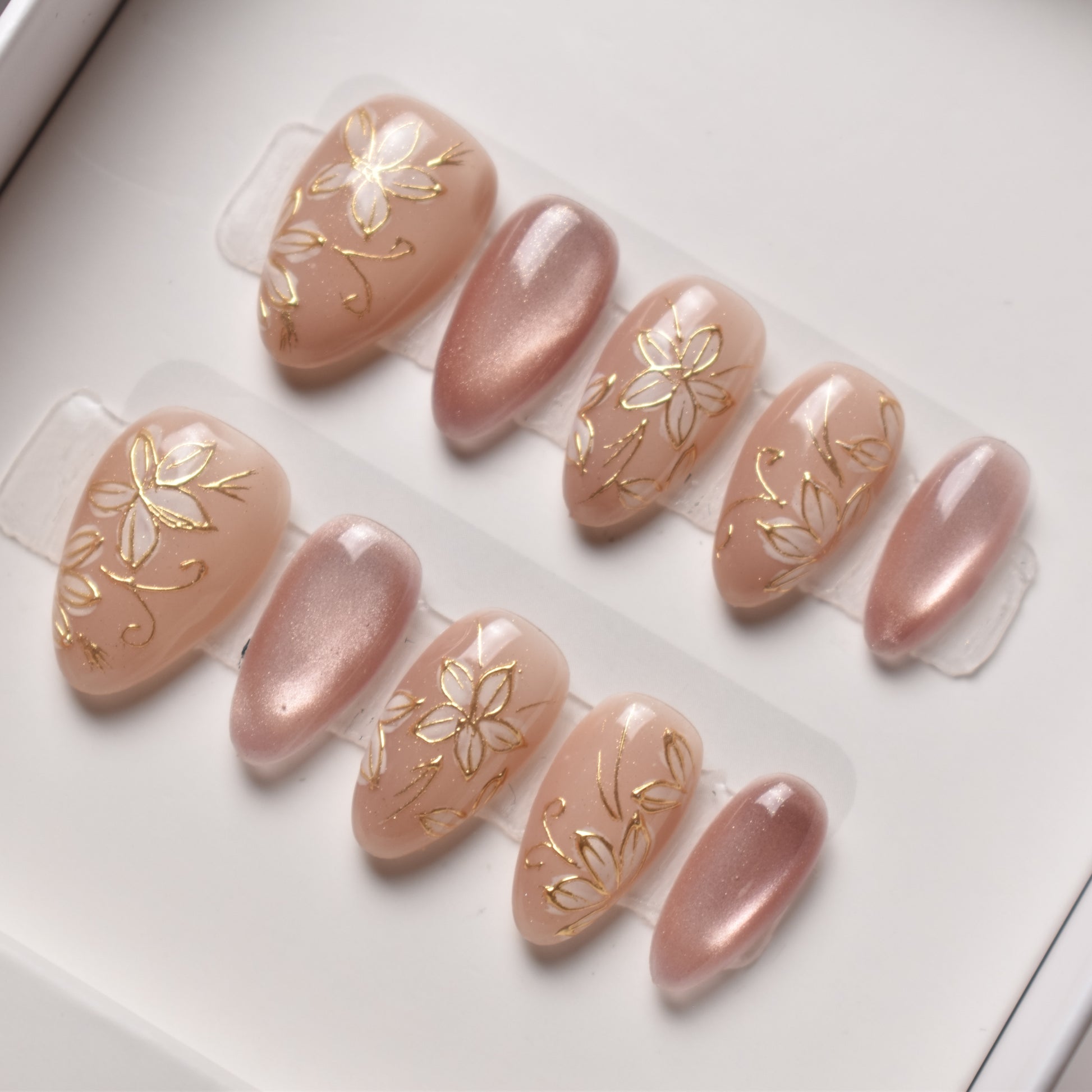 Soft blush pinks and champagne shimmer are brought to life with delicate golden floral etchings. Gentle yet radiant, this set feels like sunlight on petals. Perfect for weddings, spring luncheons, and romantic afternoons.