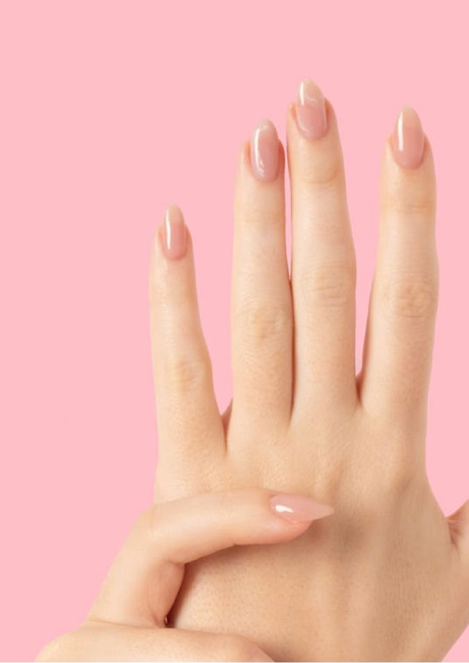To check if a nail set fits, press the nail firmly against your nail bed. If the nail matches the width of your cuticle, it's the right size. It's normal for some natural nail to show on the sides, especially if you have fan- or triangle-shaped nails. If this bothers you, choose a larger size and file the cuticle area to better fit your nail shape.