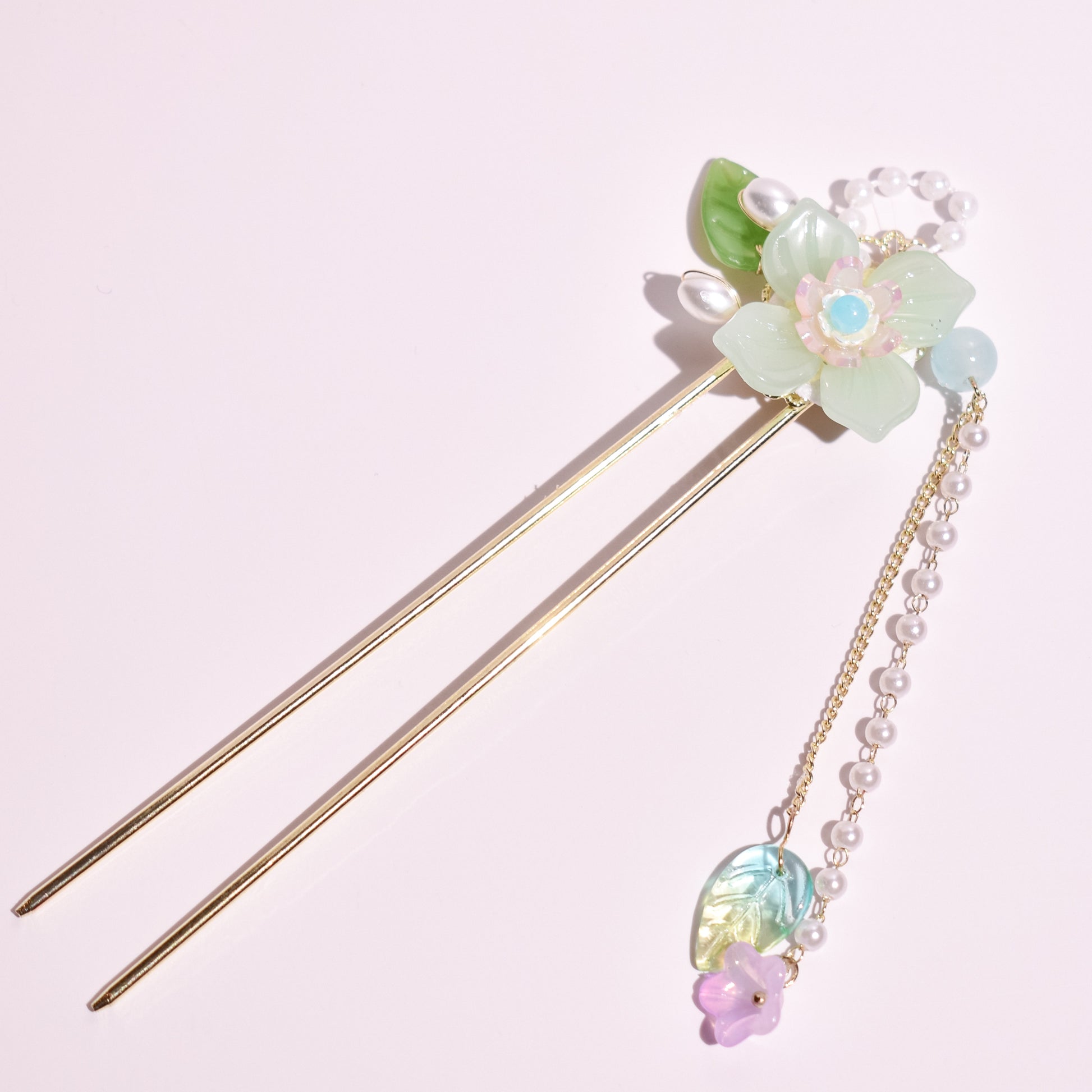 Like a dew-kissed flower at the edge of a mountain spring, this hairpin exudes a refreshing, ethereal calm. The soft, translucent mint petals are a tribute to the quiet vitality of nature, capturing the essence of a tranquil morning in a Japanese garden where every bloom is a whispered secret of spring.