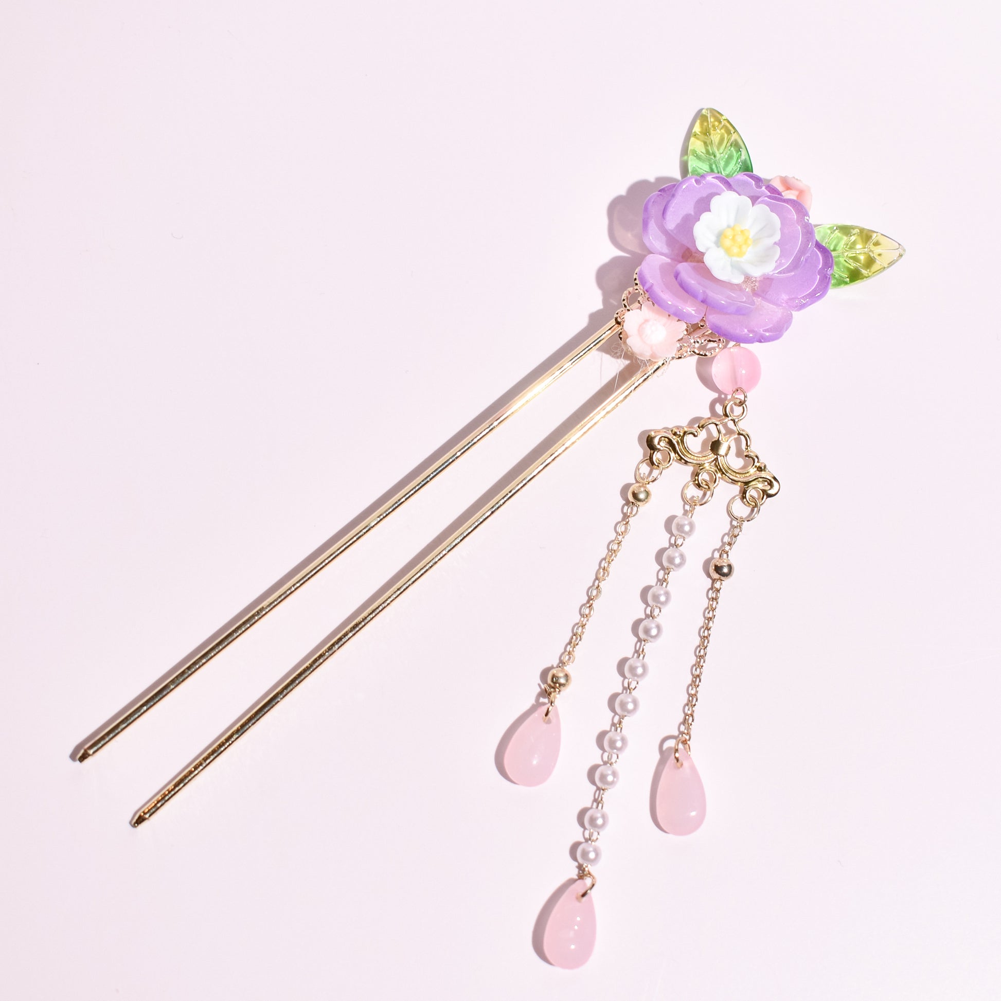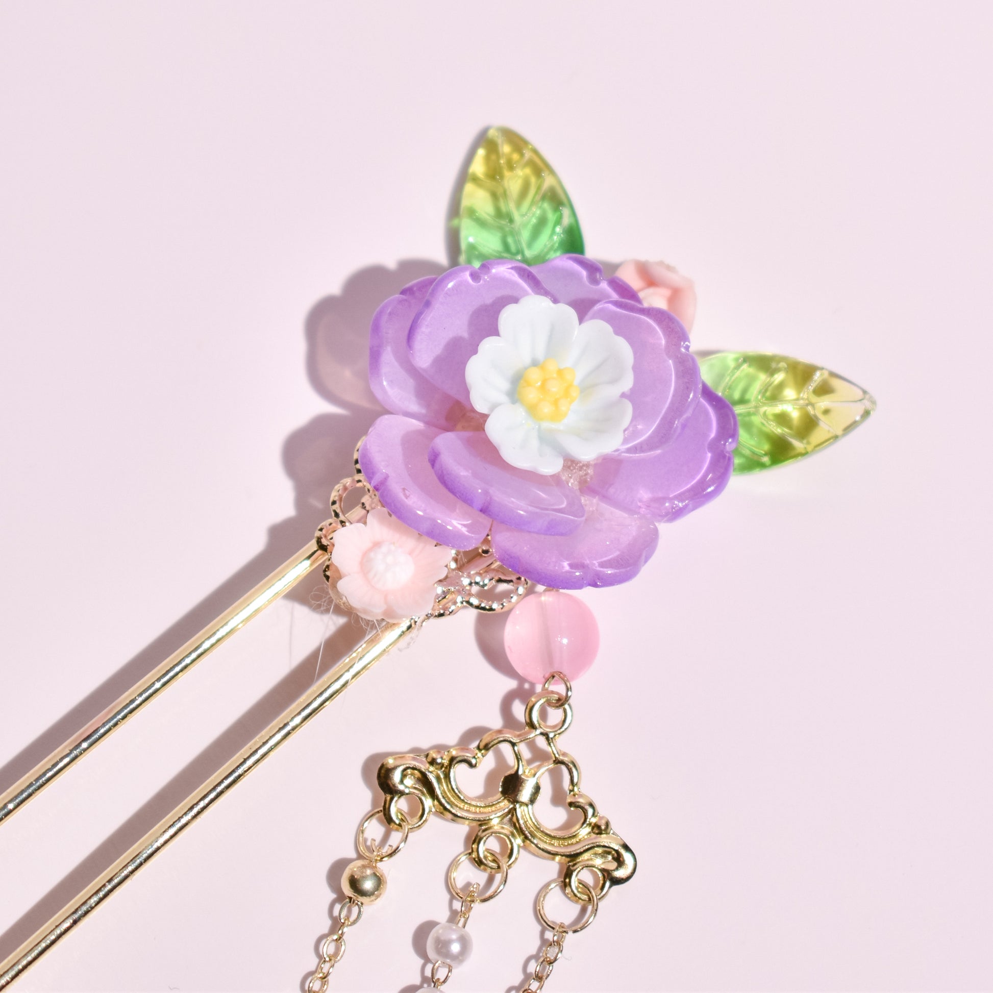 Bathed in the soft glow of a twilight garden, this hairpin captures the lush majesty of a blooming peony as it unfolds under the rising moon. The vibrant violet petals, delicate and translucent, serve as a timeless tribute to feminine grace and the quiet strength of nature's most regal blossoms.