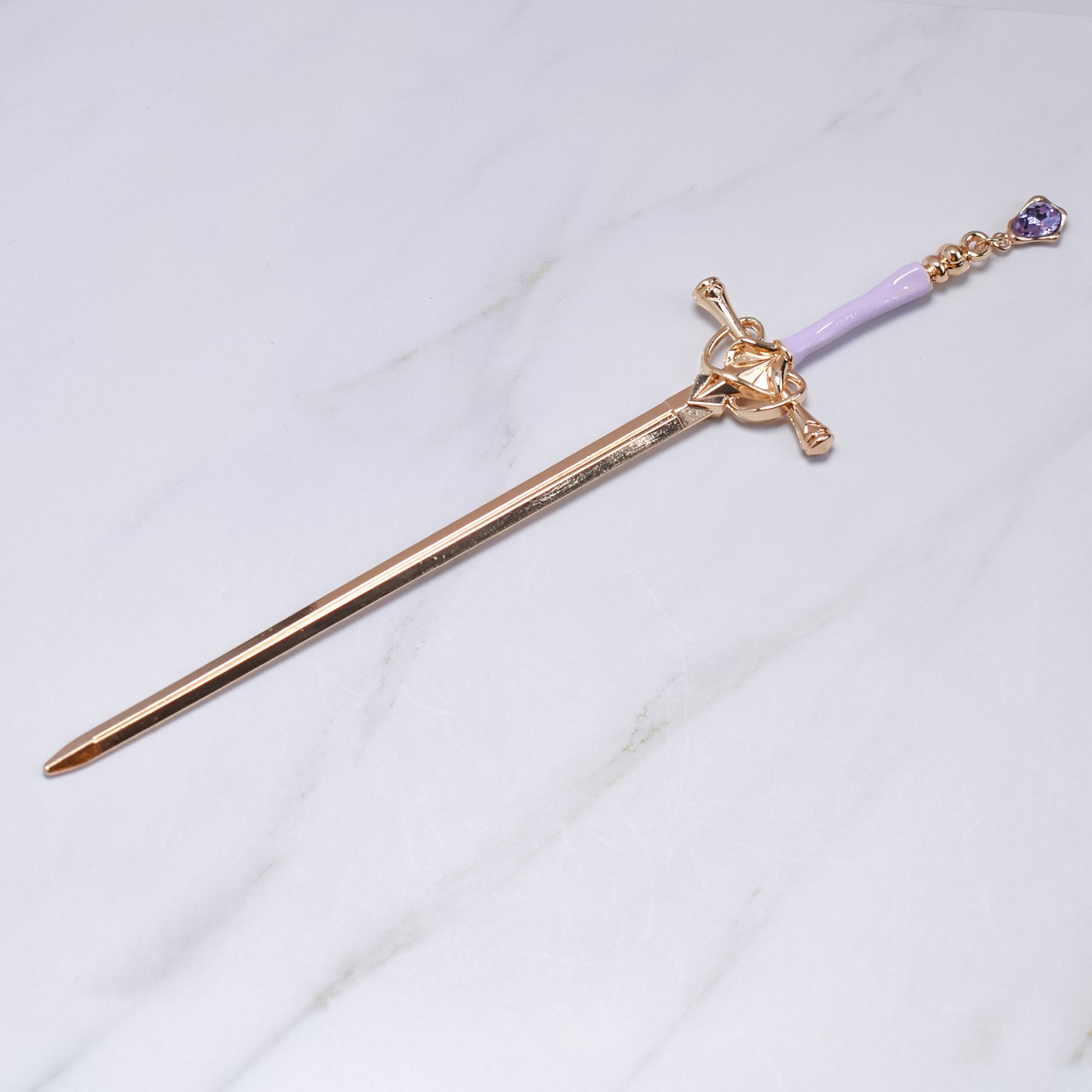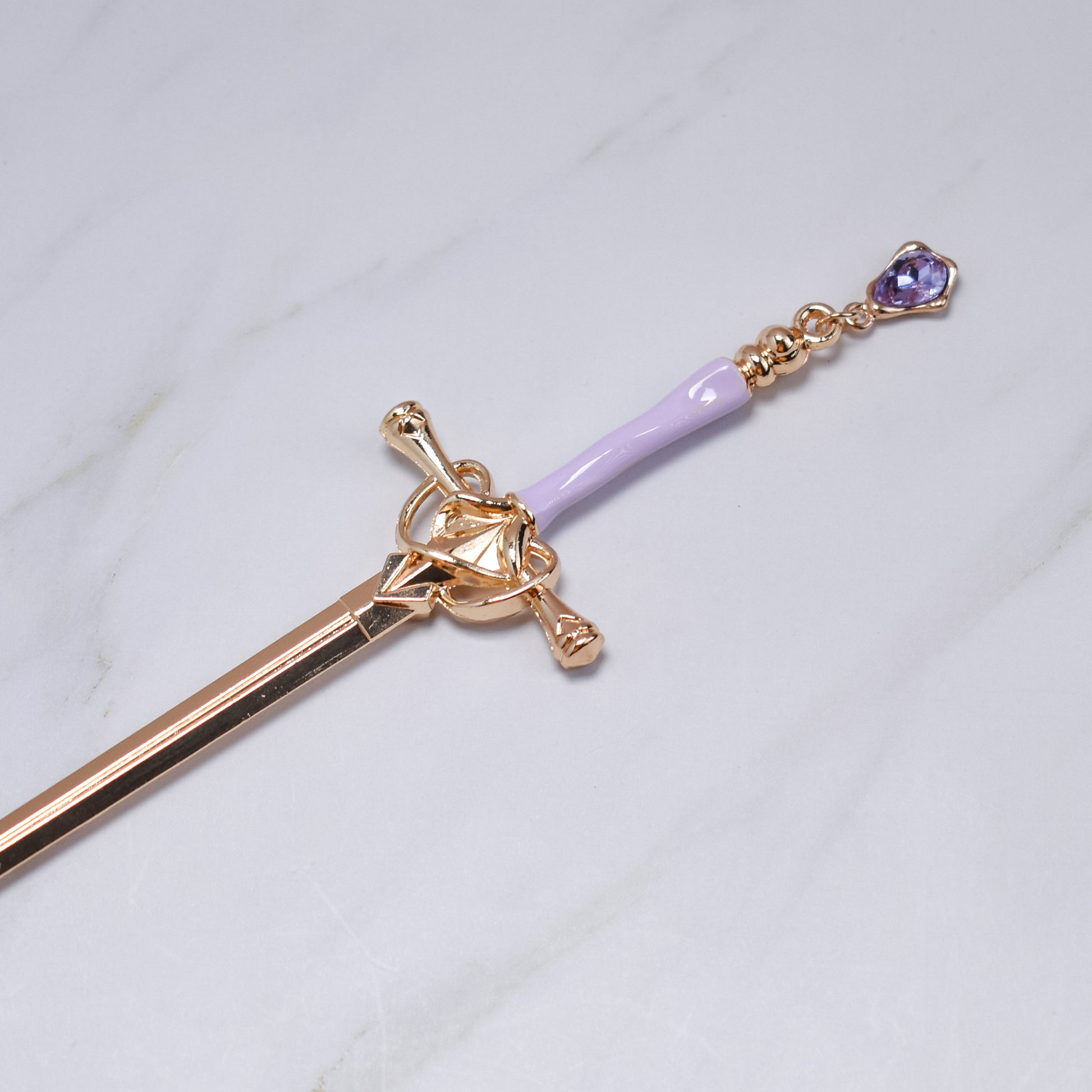 Pastel Crystal Sword Hairpin – Pink & Lavender Variants (Rose Gold Finish)