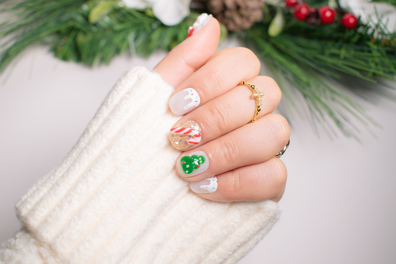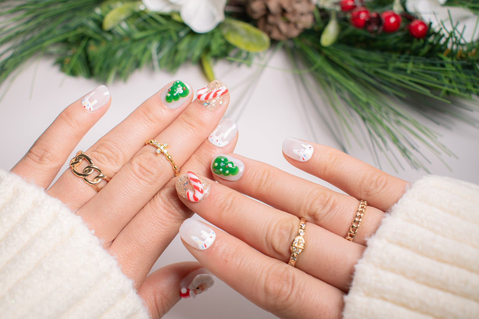 The Santa’s Holiday Bliss nail set captures the magic of the holiday season with delightful 3D Santa faces, candy canes, and glittery accents. This playful and festive design will bring holiday cheer to your fingertips, making it perfect for Christmas celebrations.