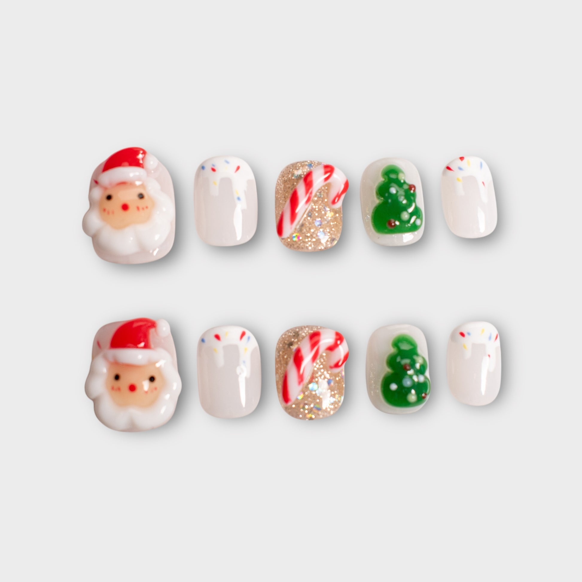- Design Features: 3D Santa face, glittery candy cane, Christmas tree, and sprinkle details