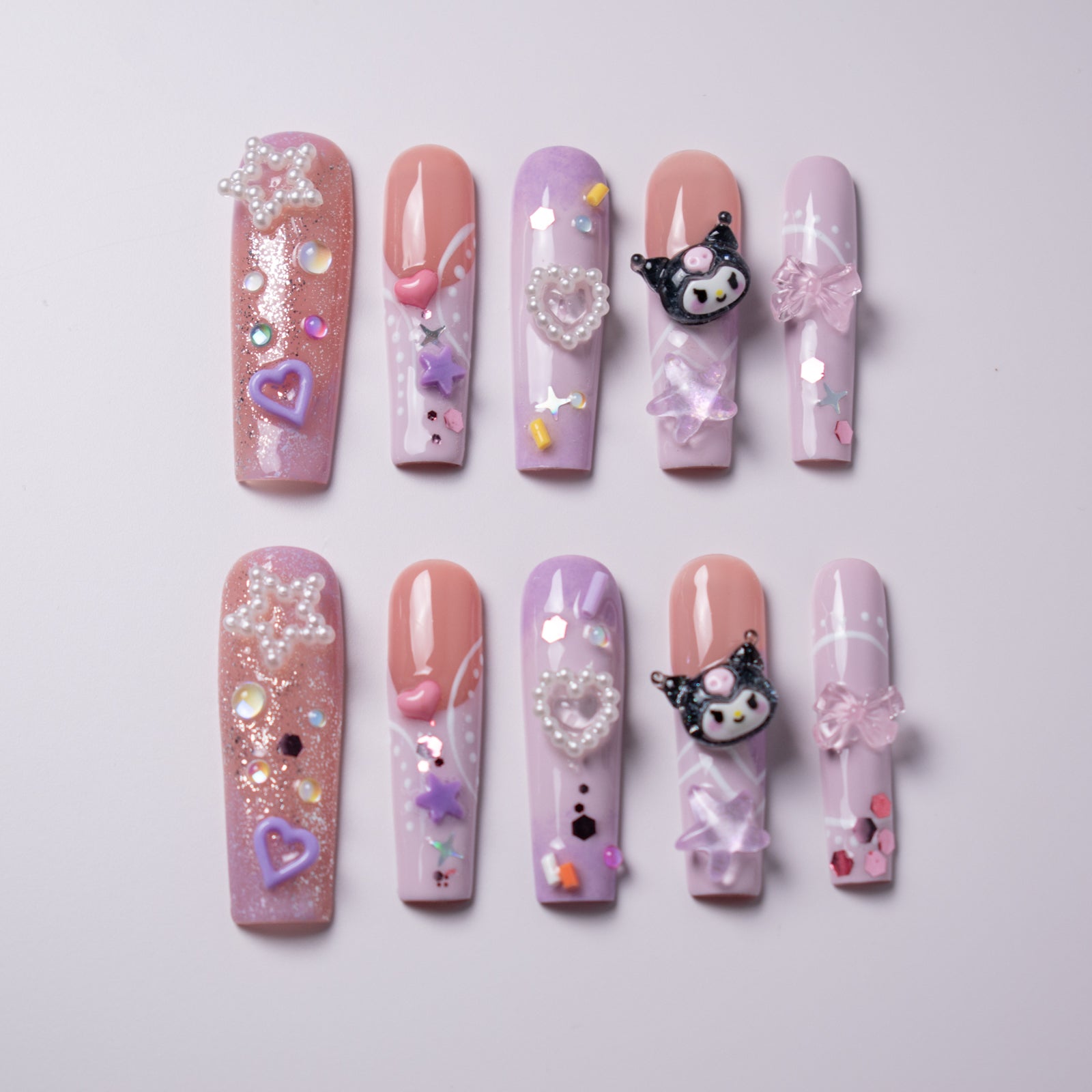 - 10 uniquely designed, hand-painted press-on nails made with high-quality UV gel.