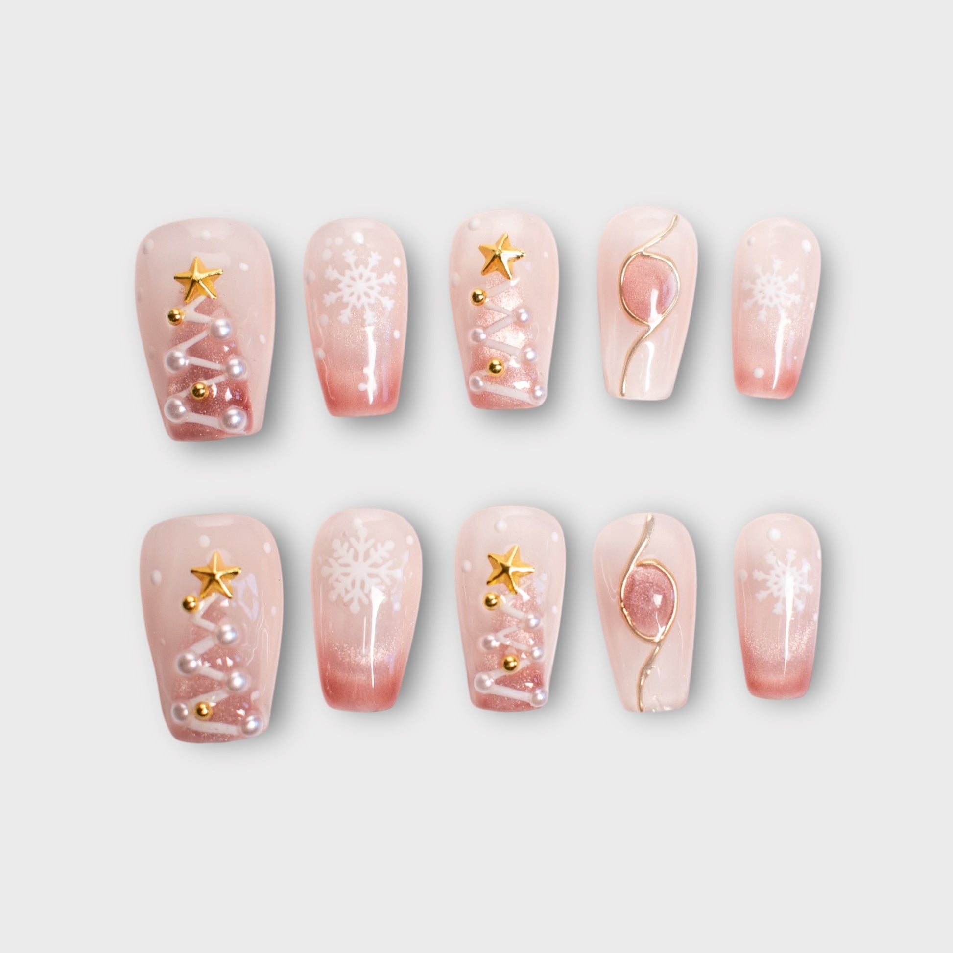 - Design Features: Festive Christmas trees, golden stars, pearls, snowflakes