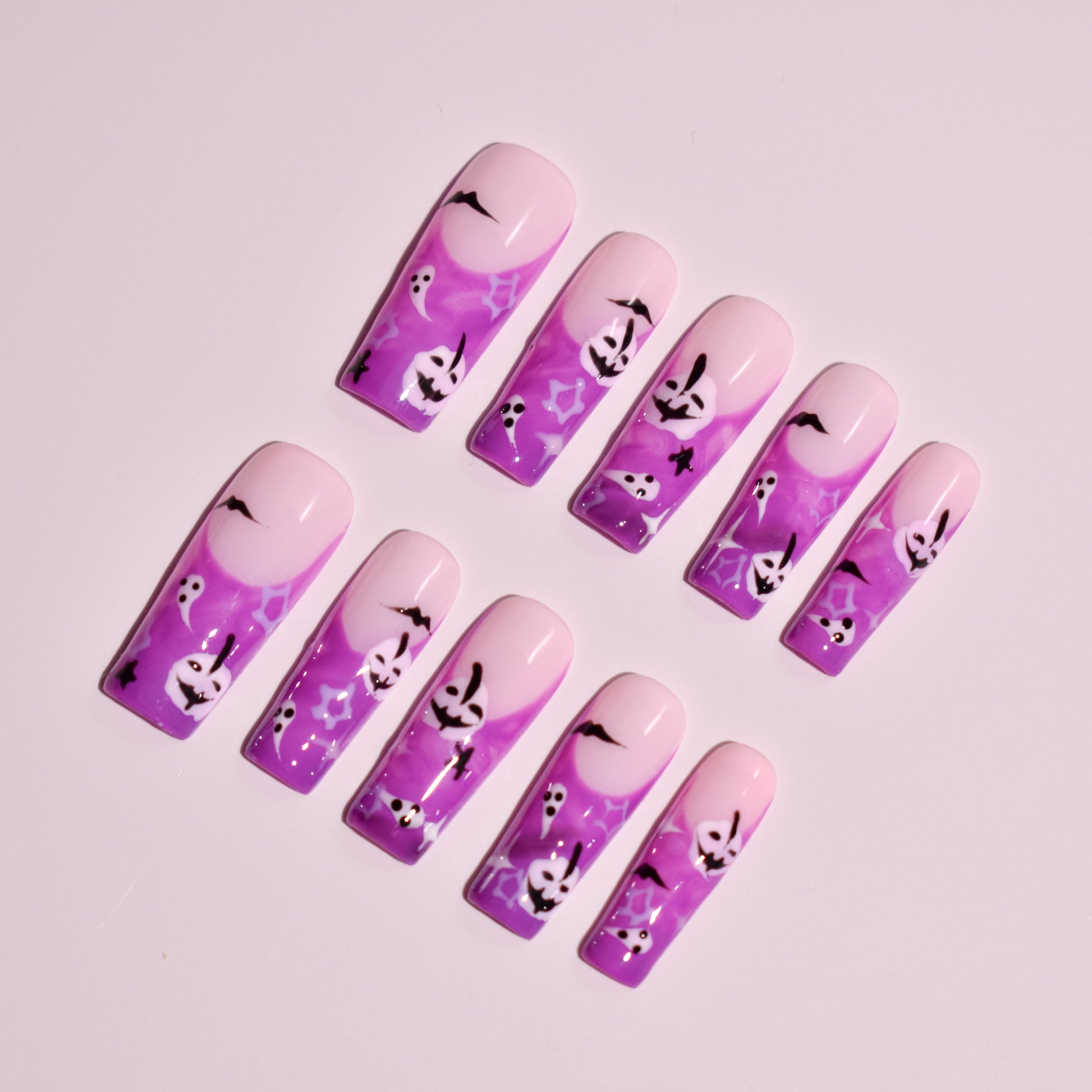 ✦ Violet Haunt | Long Square Pink Purple Ghost Press-On Nails